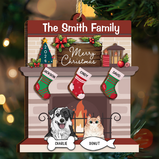 Family Fire Place Stocking Christmas - Personalized Wooden Ornament