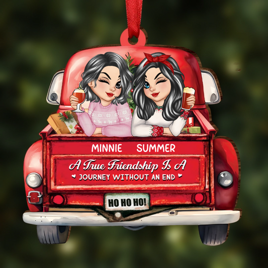 A True Friendship Is A Journey Without An End Red Truck - Personalized Custom Shaped Wooden Ornament