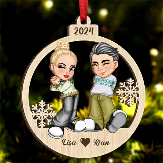 Christmas Couple Y2K - Personalized Wooden Cutout Ornament