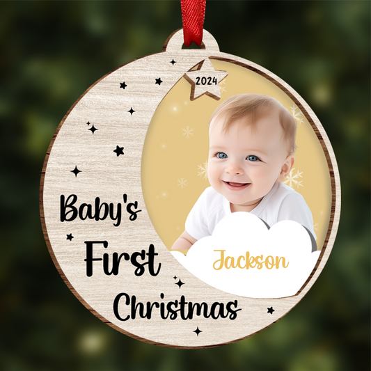 Custom Photo New Baby's First Christmas - Personalized 2-Layered Wooden Ornament