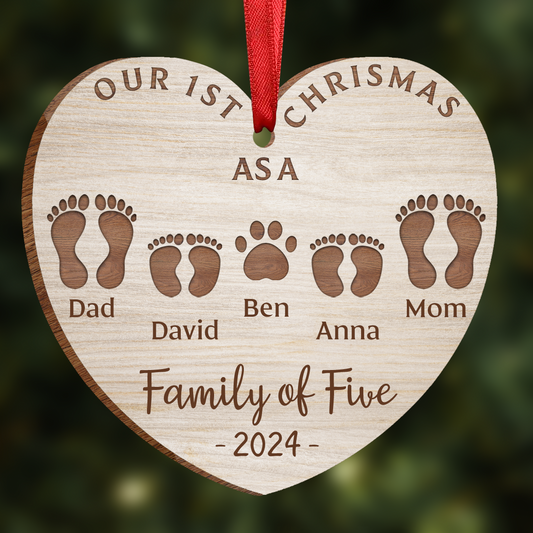 First Christmas As A Family Of Four Footprints - Personalized Custom Shaped Wooden Ornament