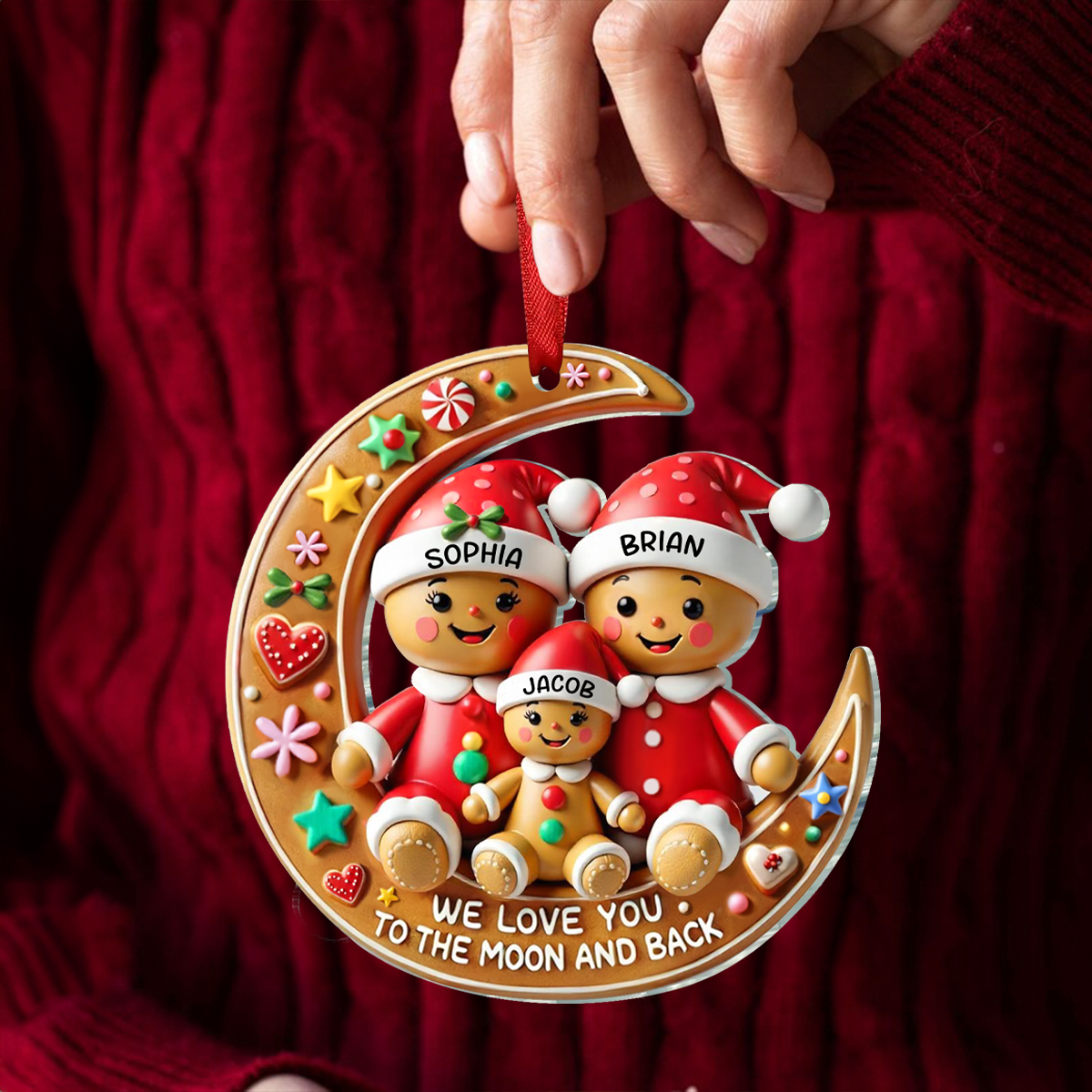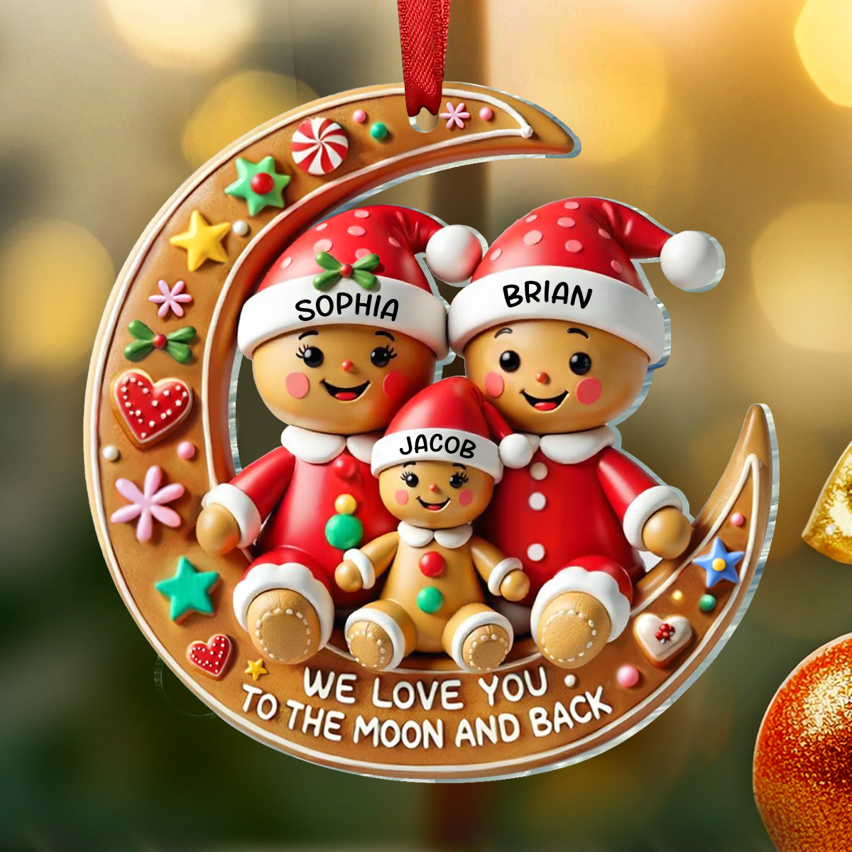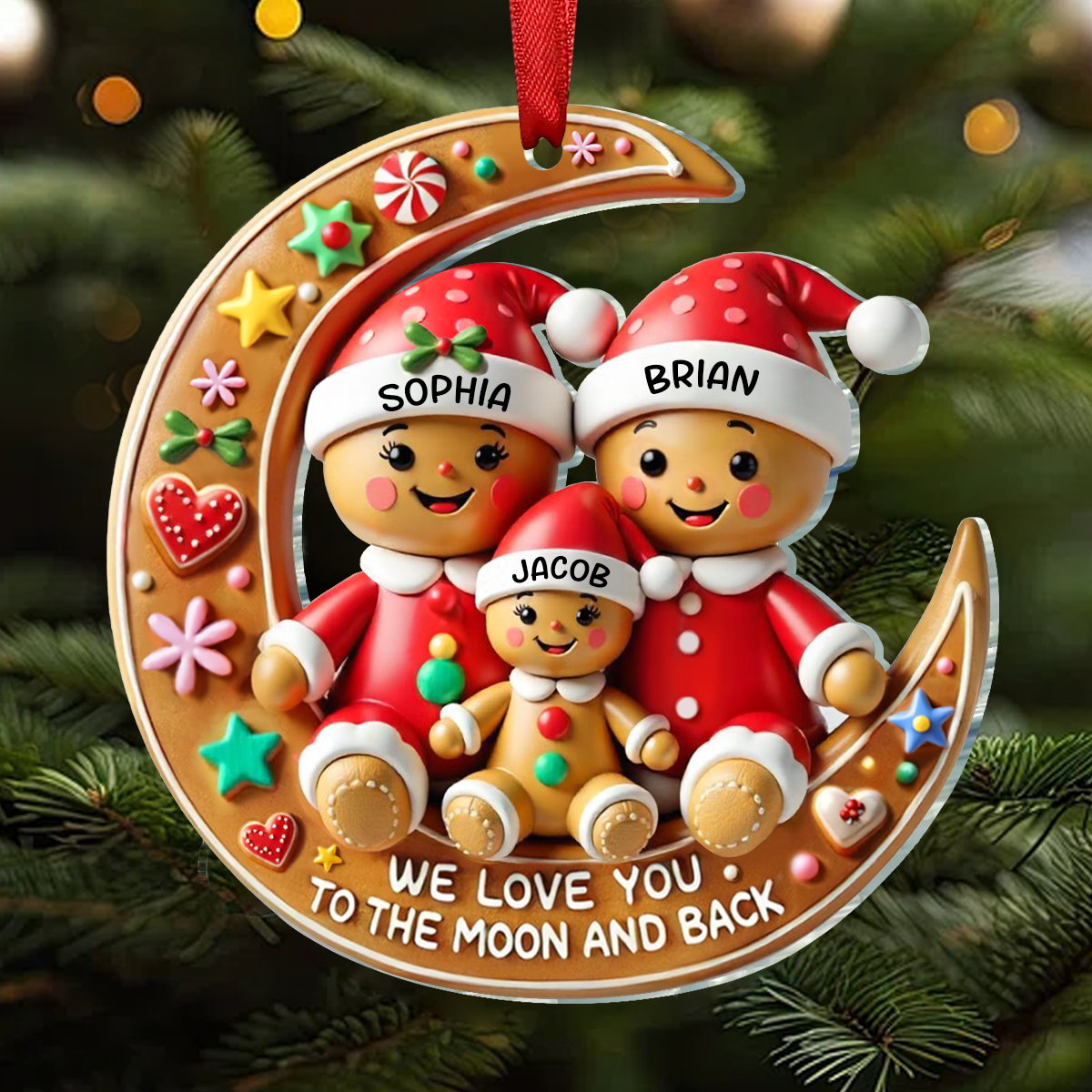 3D Effect Dad Mom We Love You To The Moon And Back Personalized Acrylic Ornament, Christmas Gift For Son, Daughter, Children