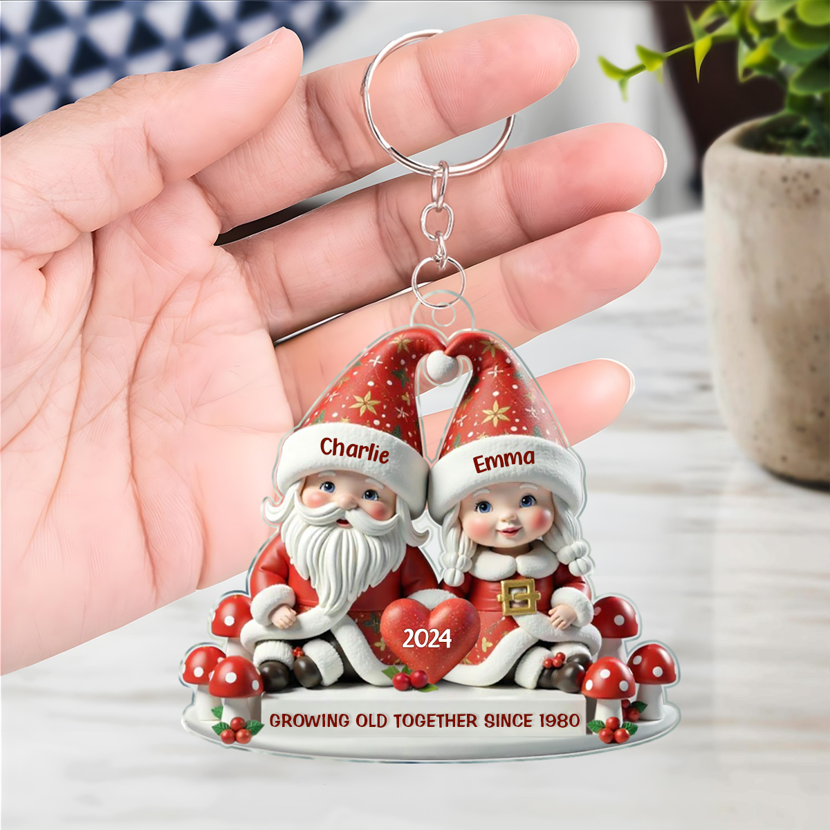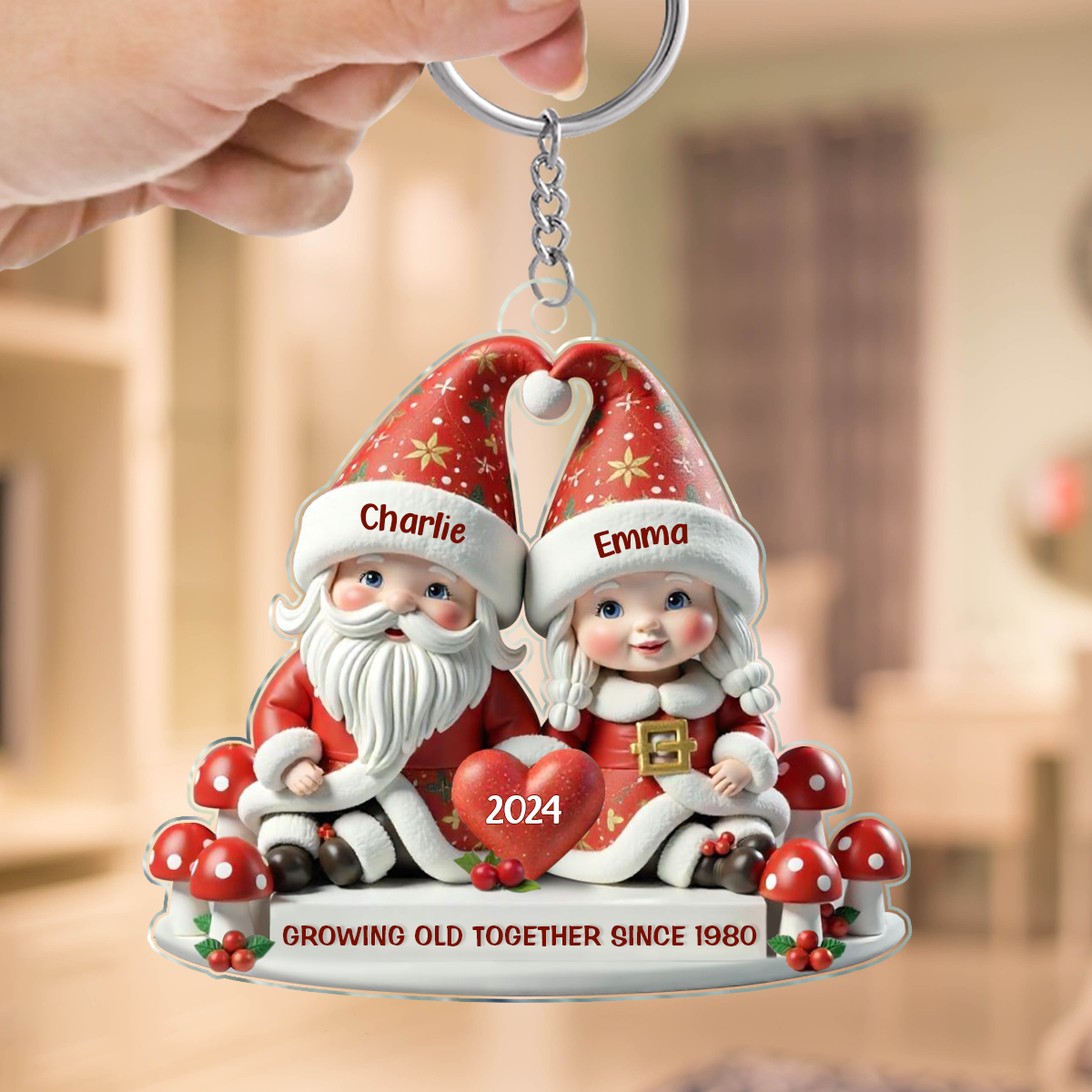 3D Effect Gnome Couple Personalized Acrylic Keychain Ornament, Valentine's Gift For Him, For Her, Husband, Wife