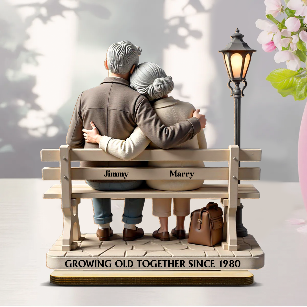 3D Effect Old Couple Sitting On Bench At The Park Personalized Standing Wooden Plaque, Heartfelt Gift For Couple, For Him, For Her, Husband, Wife