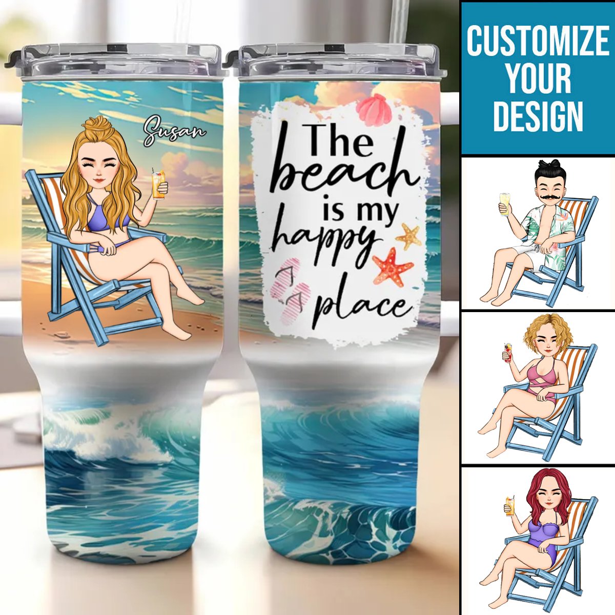 40oz Friends - The Beach Is My Happy Place - Personalized Tumbler With Straw