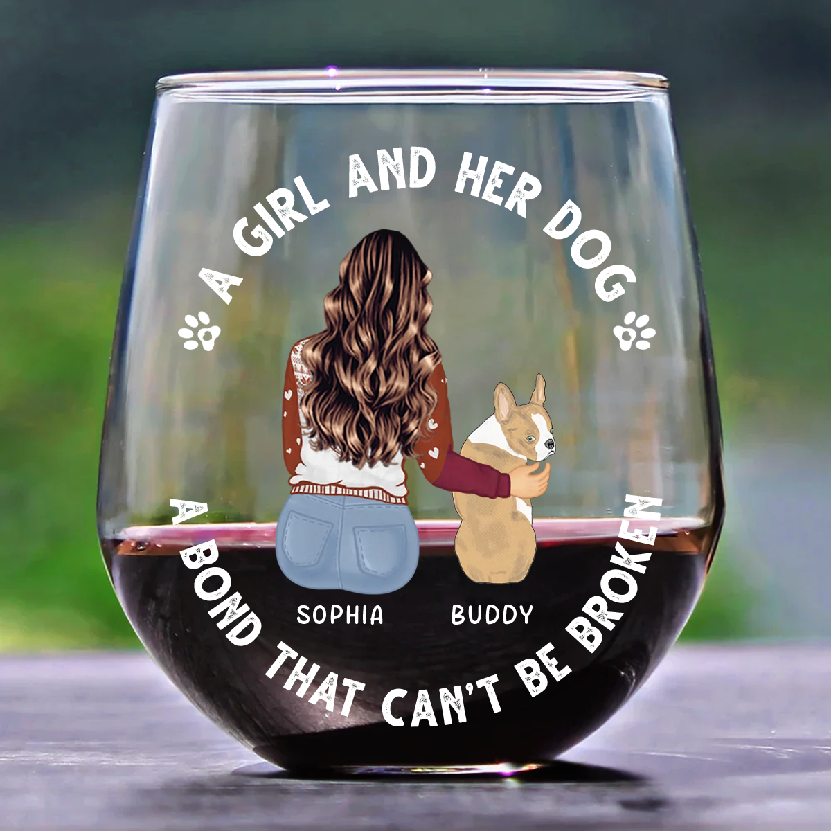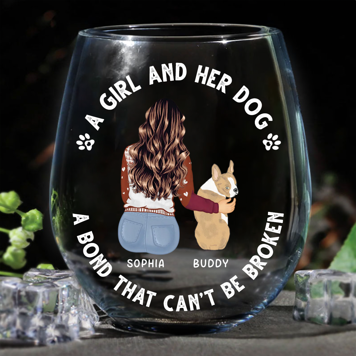 A Bond That Can't Be Broken Dog Mom Dog Dad - Personalized Stemless Wine Glass
