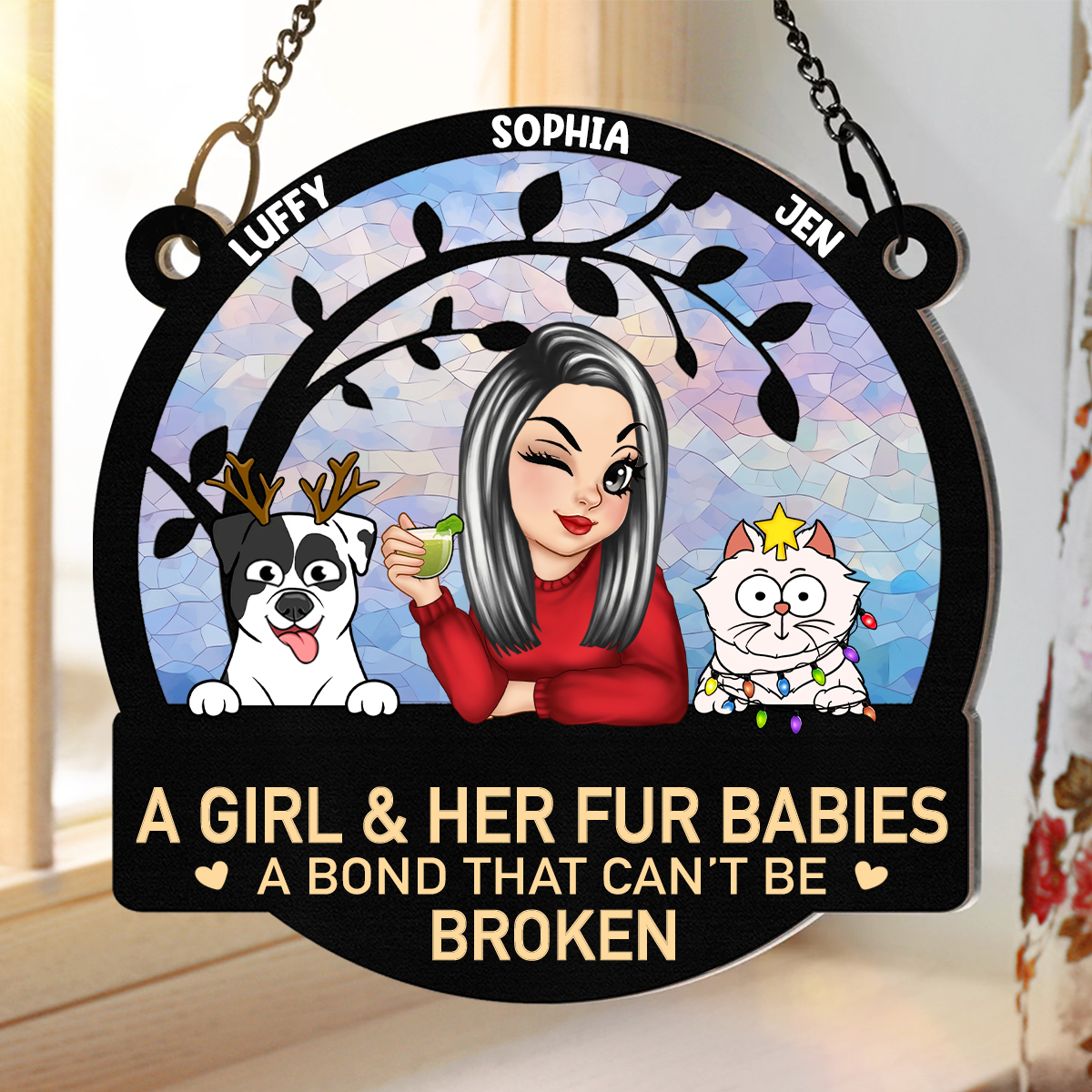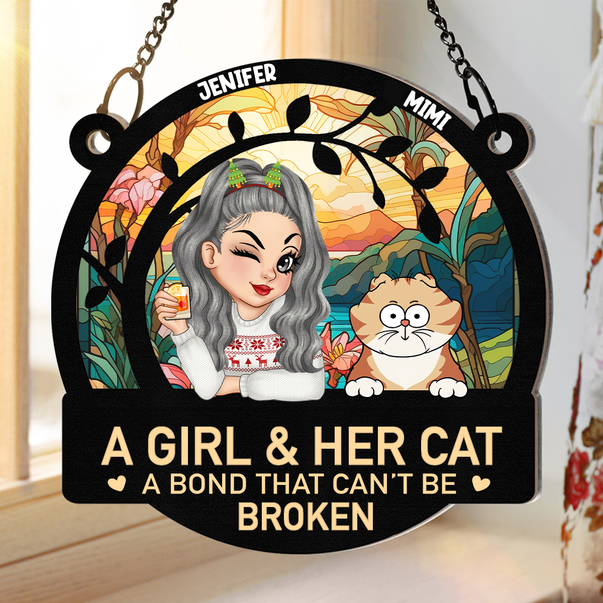 A Girl And Her Cats A Bond That Can't Be Broken Turban Woman - Personalized Window Hanging Suncatcher Ornament