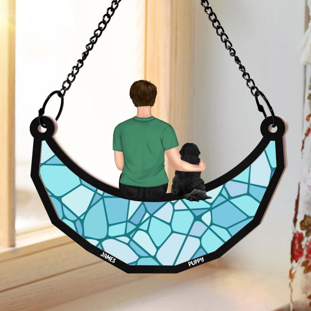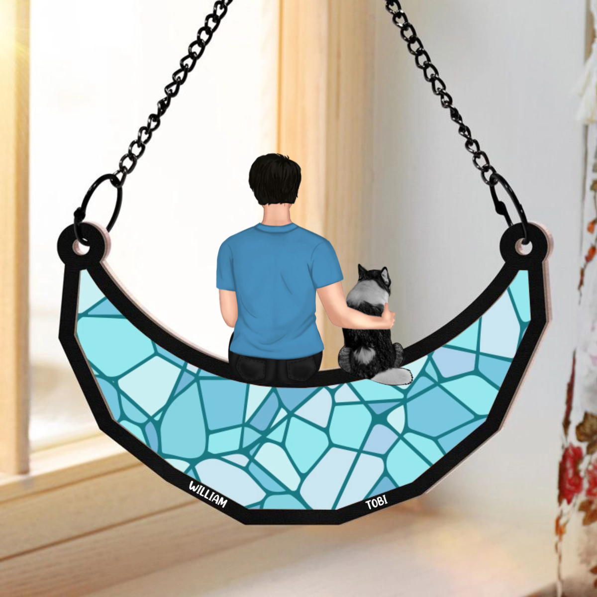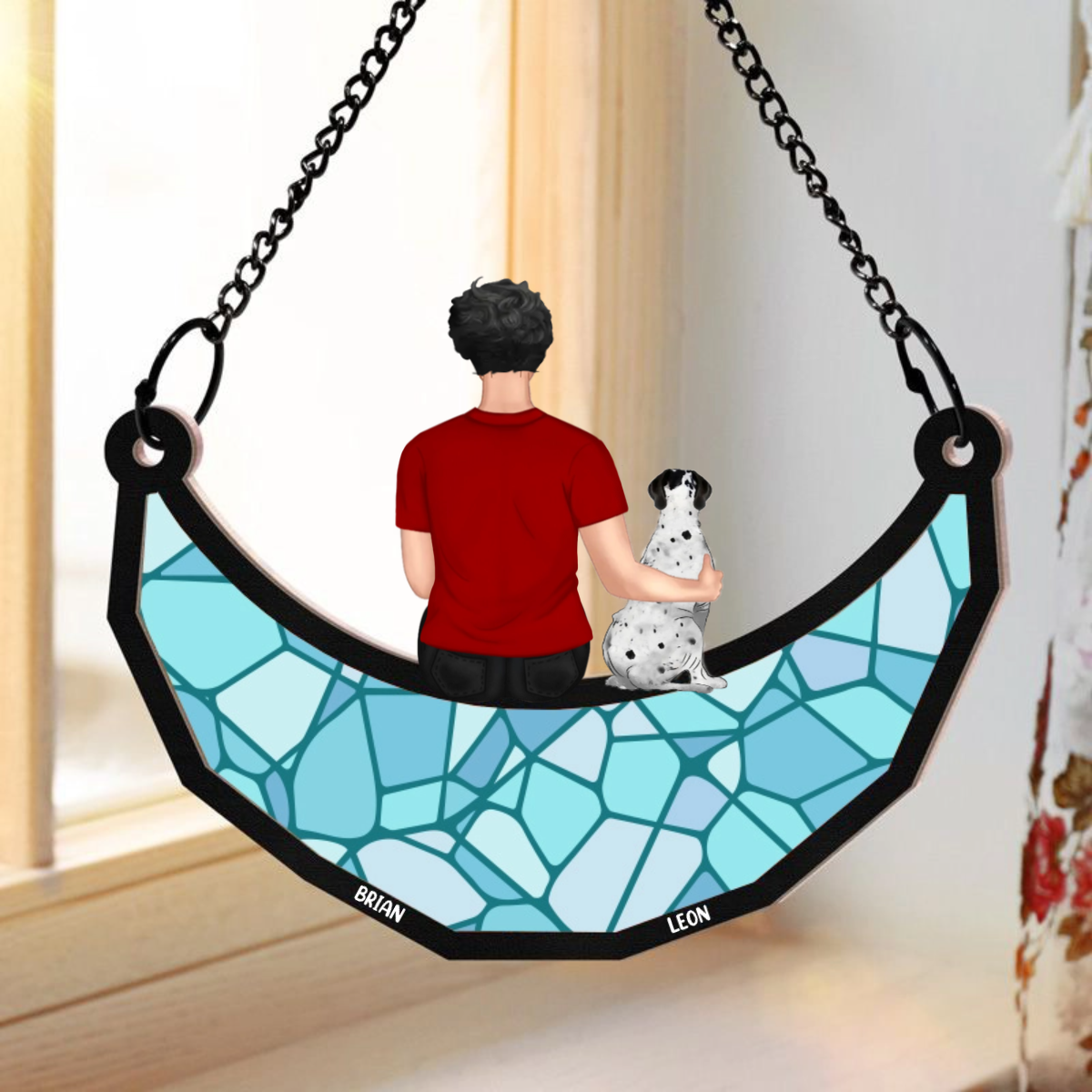 A Man And His Dog A Bond That Can't Be Broken - Personalized Window Hanging Suncatcher Ornament