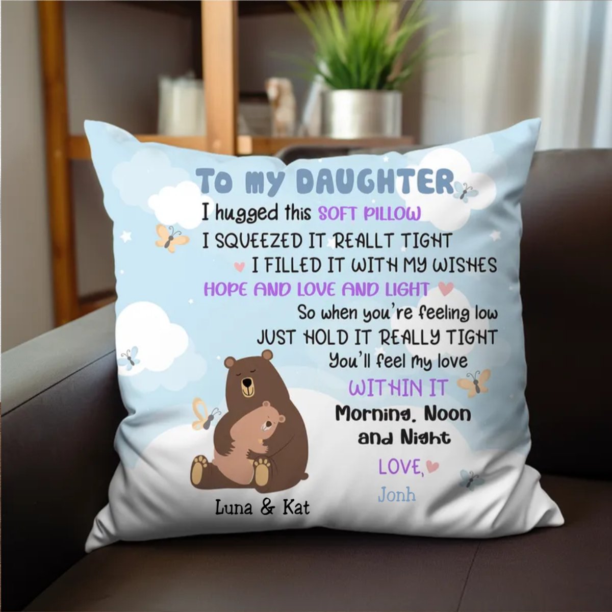 Bear Family - To My Daughter I Hugged This Soft Pillow - Personalized Pillow