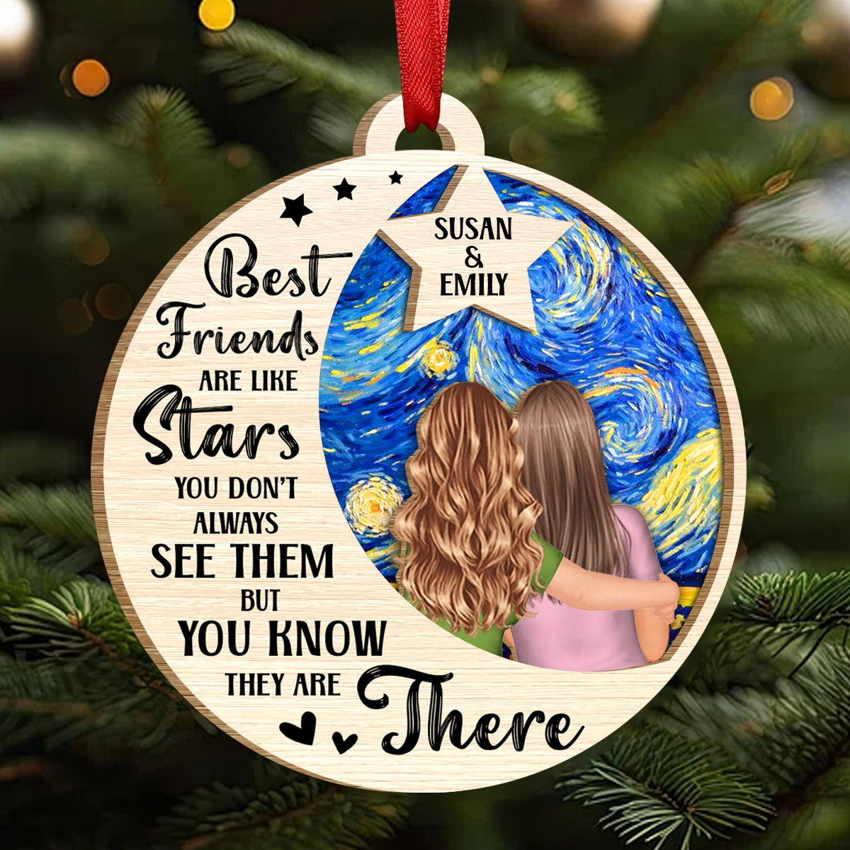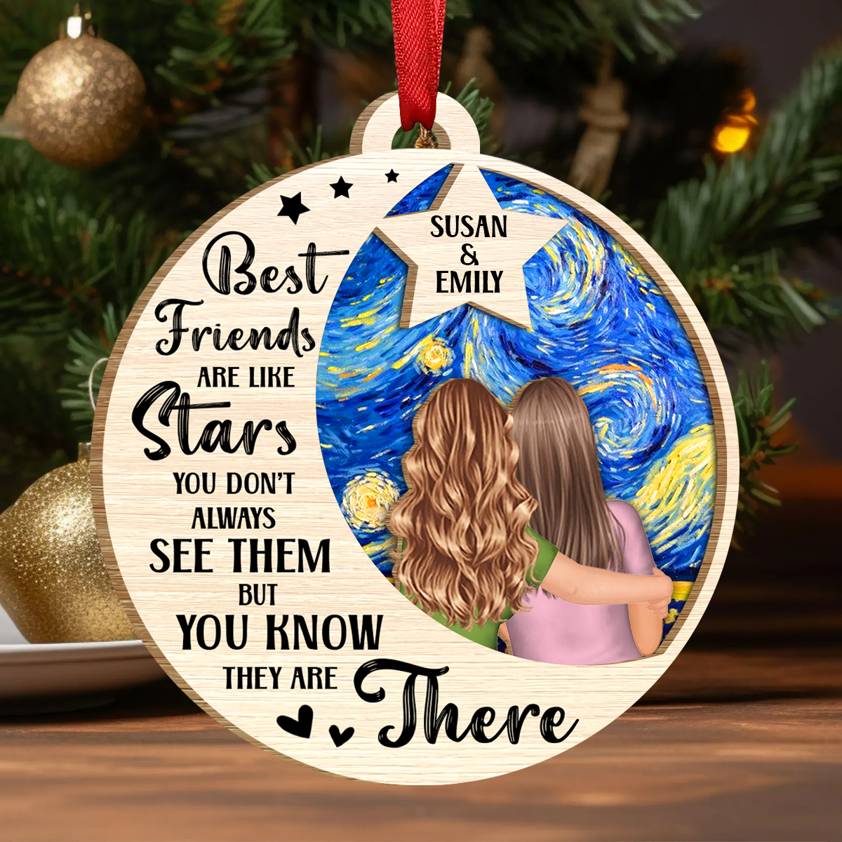Best Friends Are Like Stars - Personalized Wooden Ornament