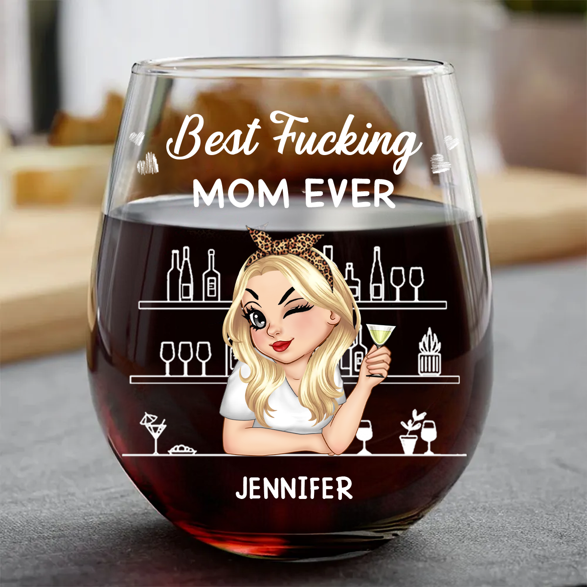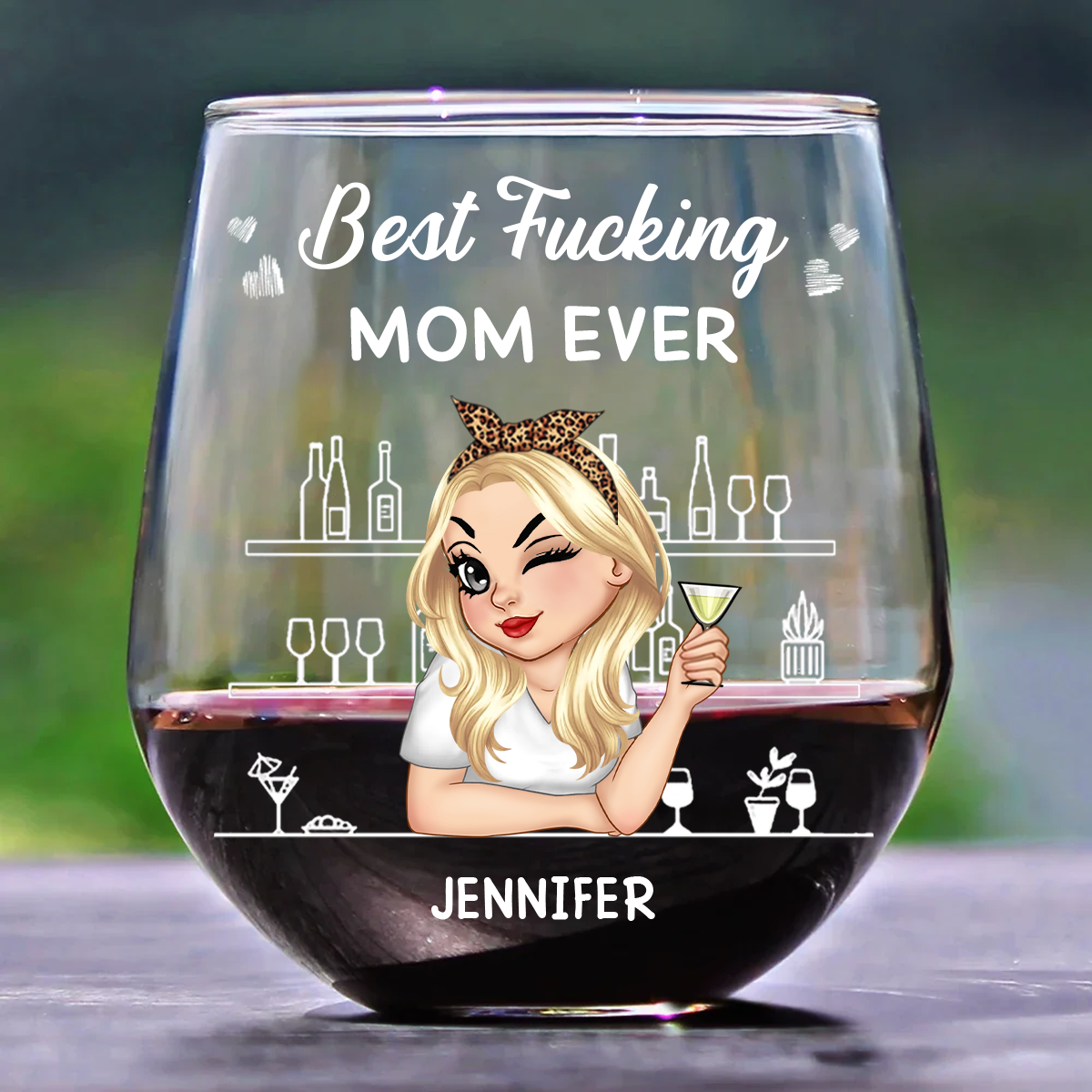 Best Mom Ever - Personalized Stemless Wine Glass