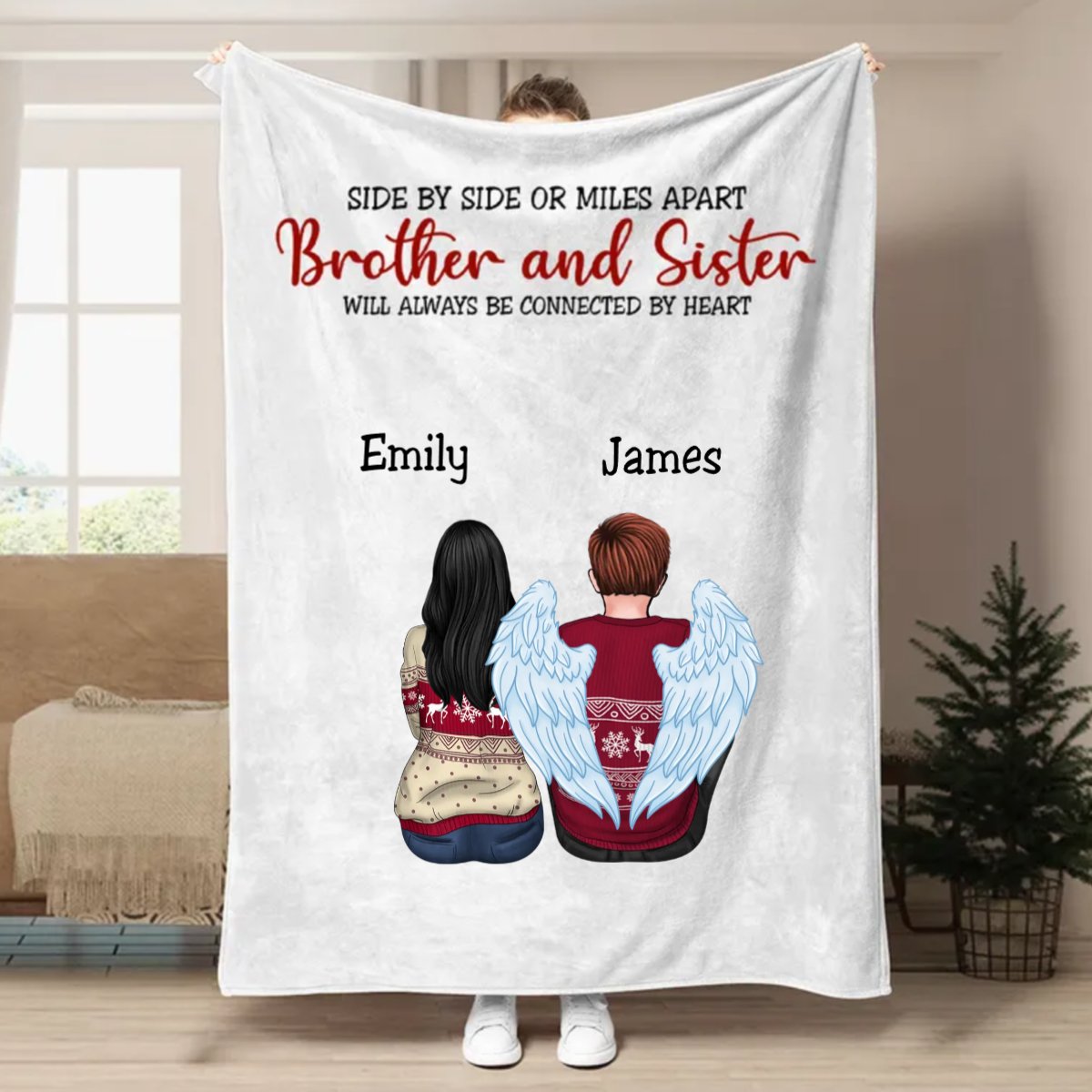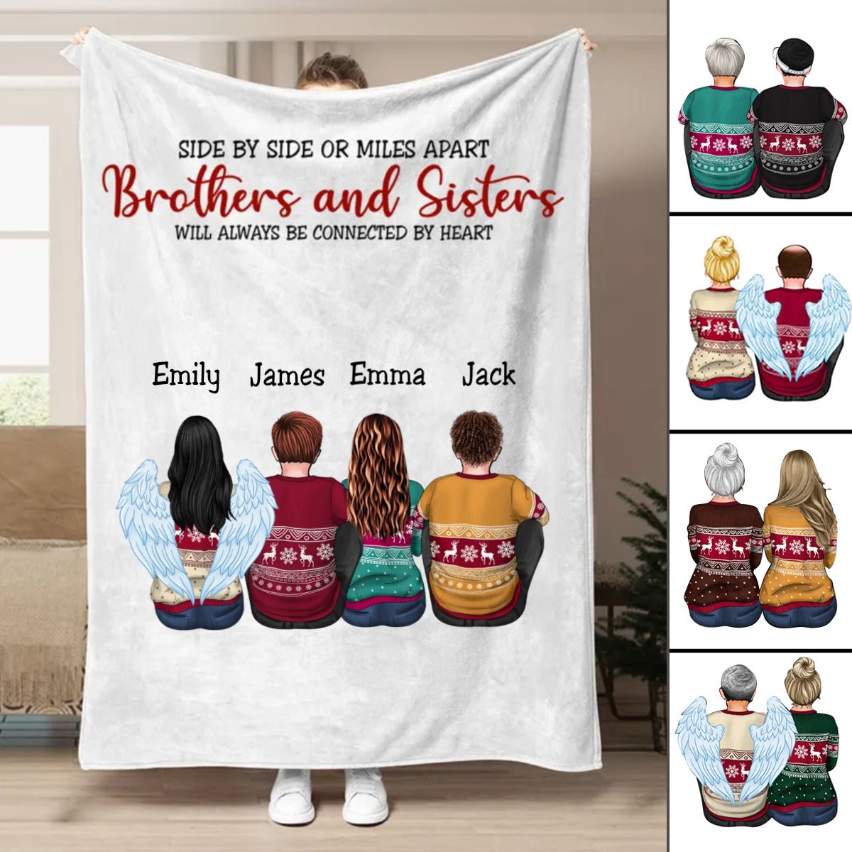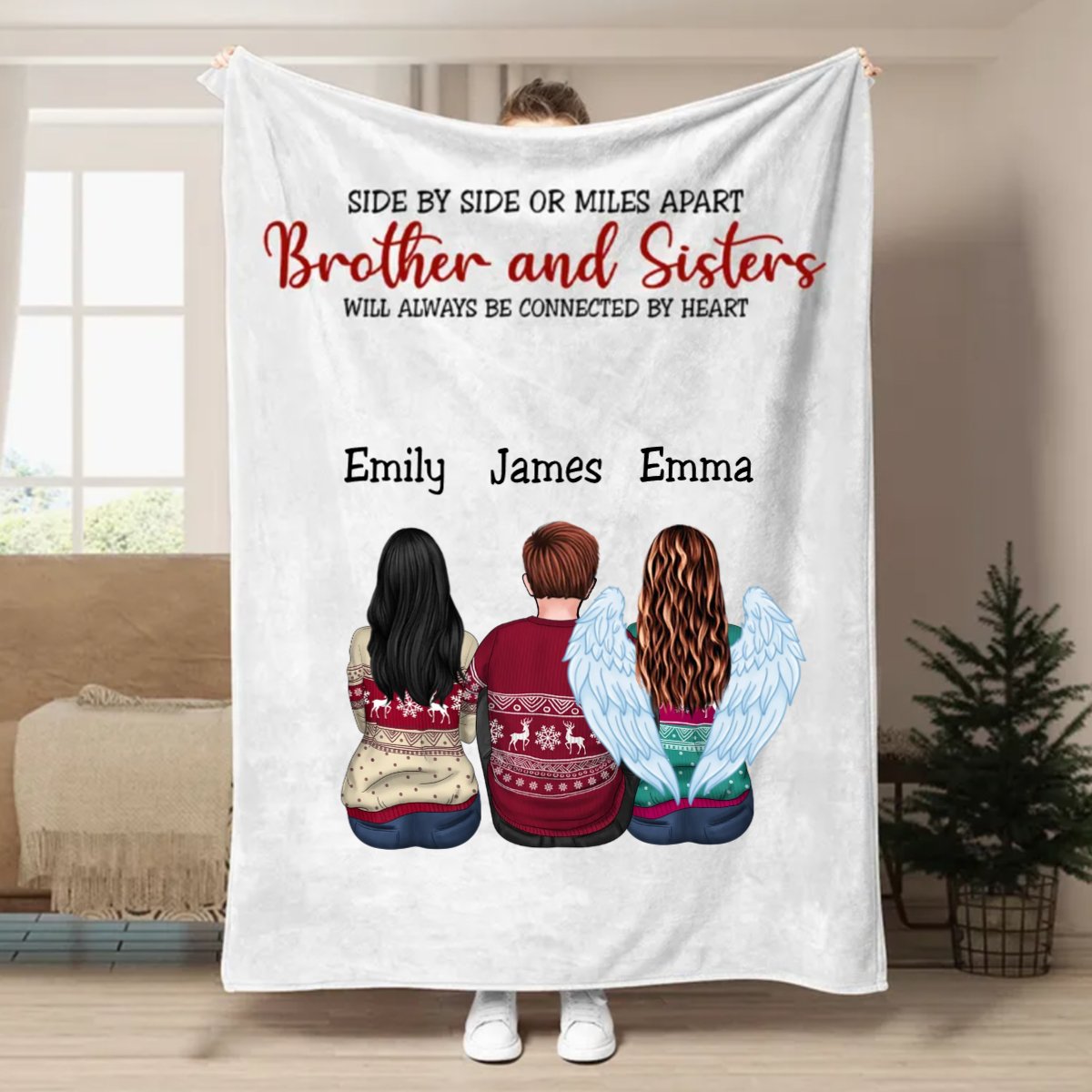 Brothers & Sisters - Side By Side Or Miles Apart Brothes & Sisters Will Always Be Connected By Heart - Personalized Blanket