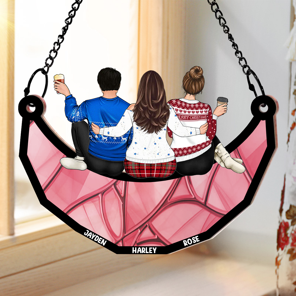 Besties Friends Brothers Sisters Sitting On The Moon - Personalized Window Hanging Acrylic Ornament