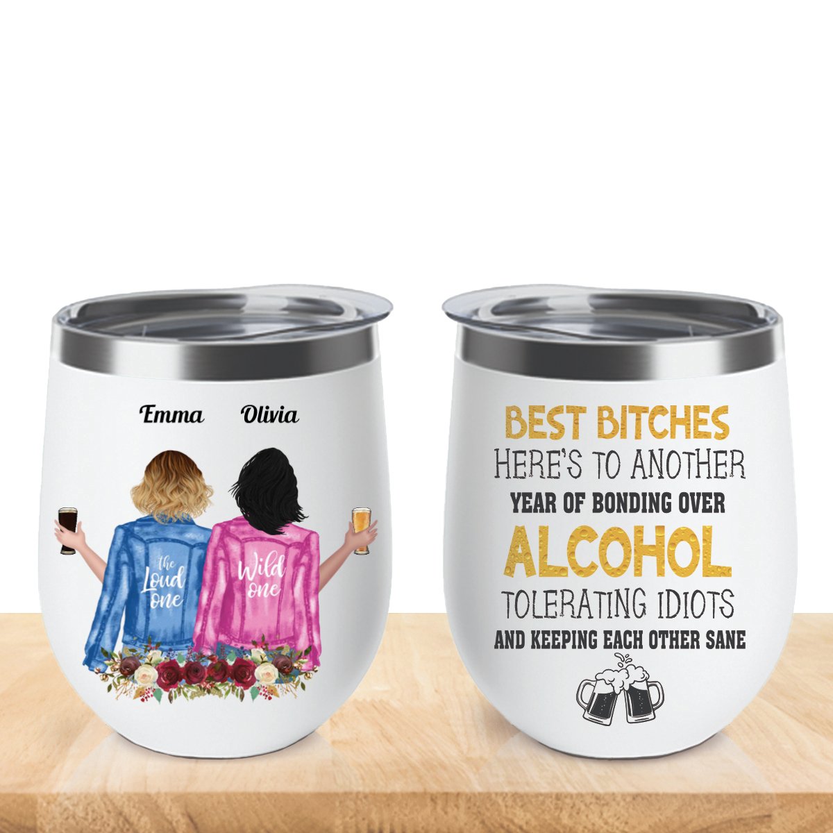 Besties - Here's To Another Year Of Bonding Over Alcohol - Personalized Wine Tumbler - Gift For Besties