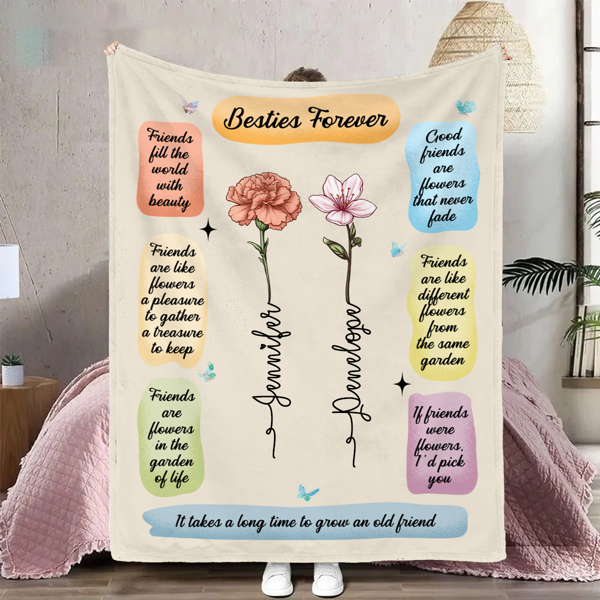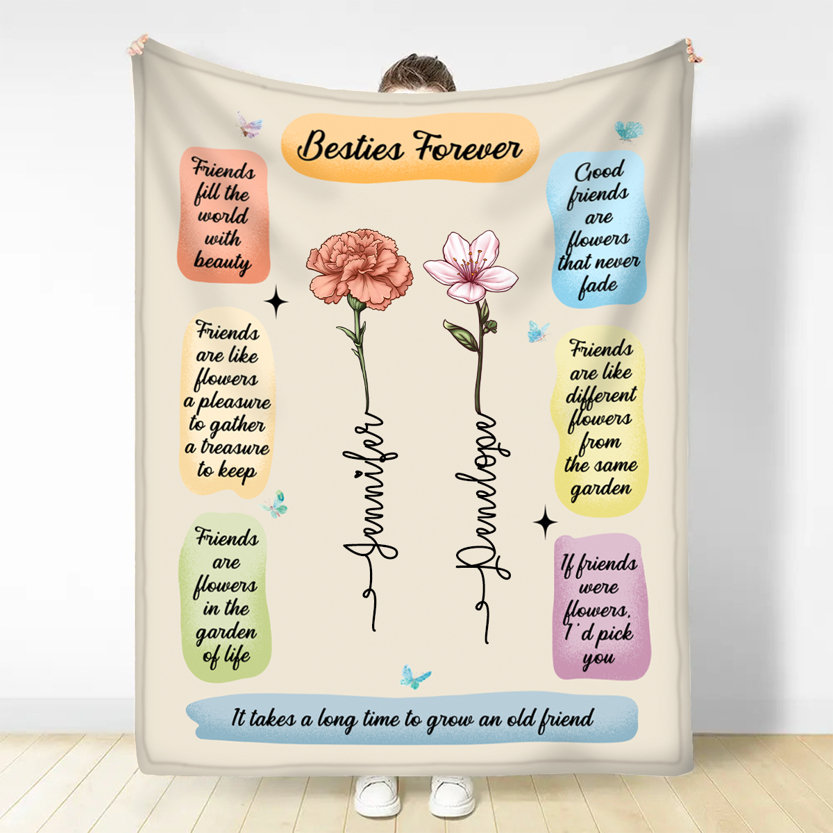 Birth Flower Besties Forever Grow An Old Friend - Personalized Fleece Blanket