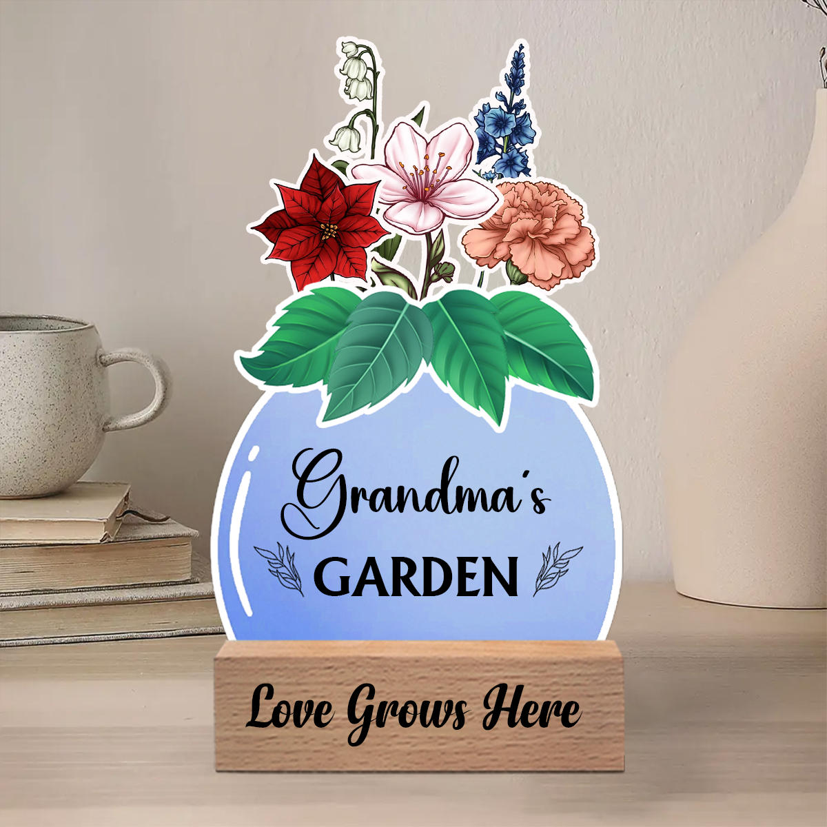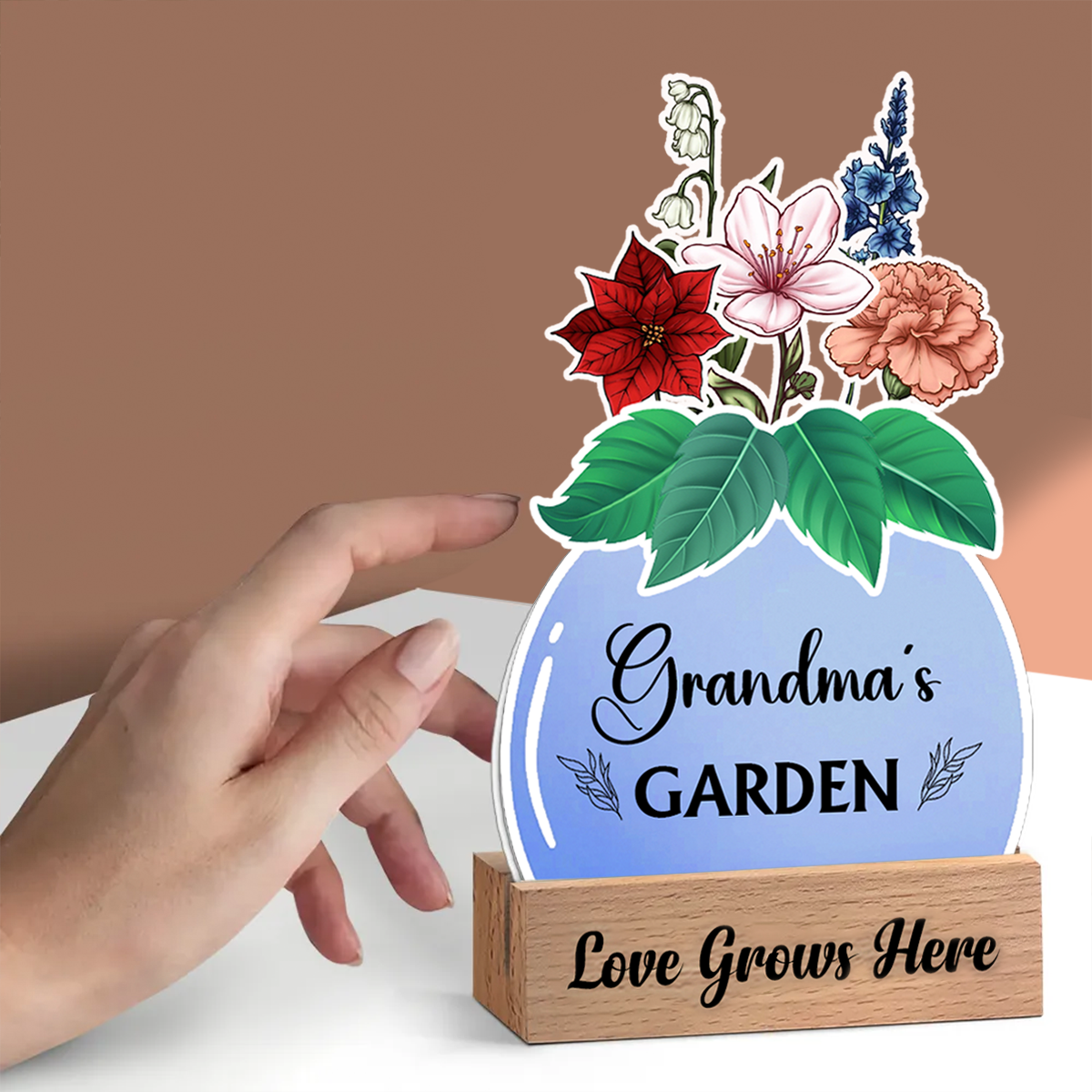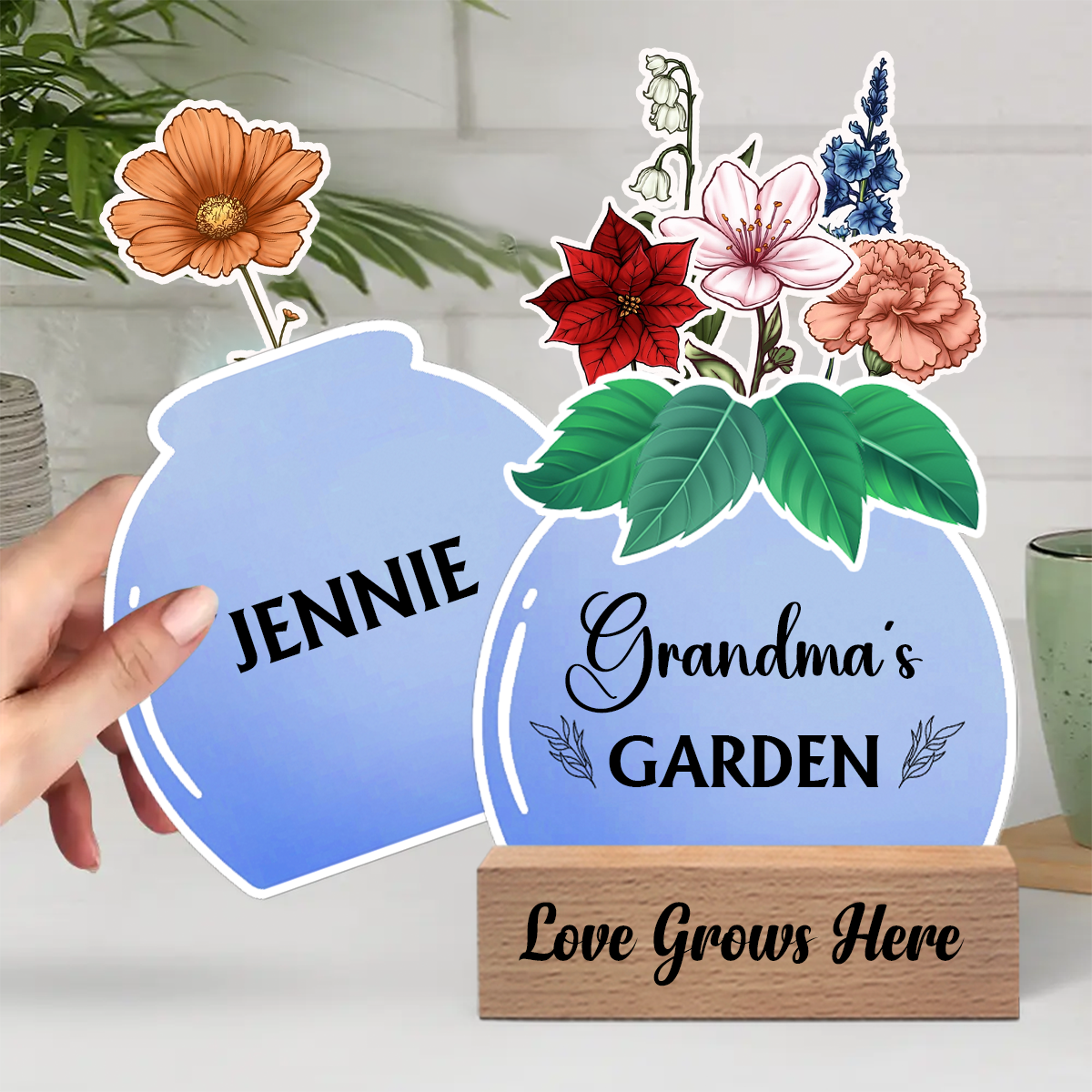 Birth Flower Grandma's Garden - Personalized Custom Shaped Cardstock With Wooden Stand