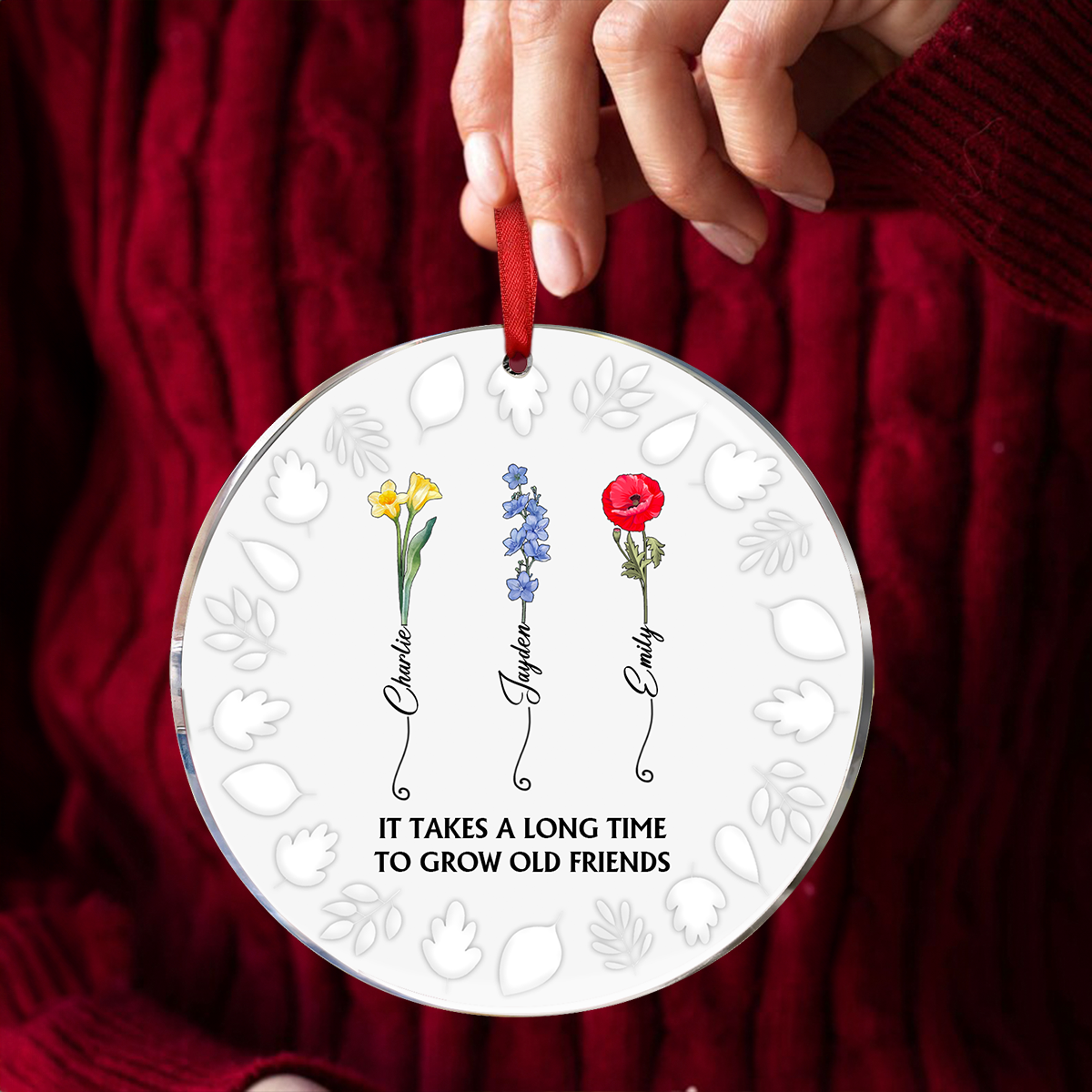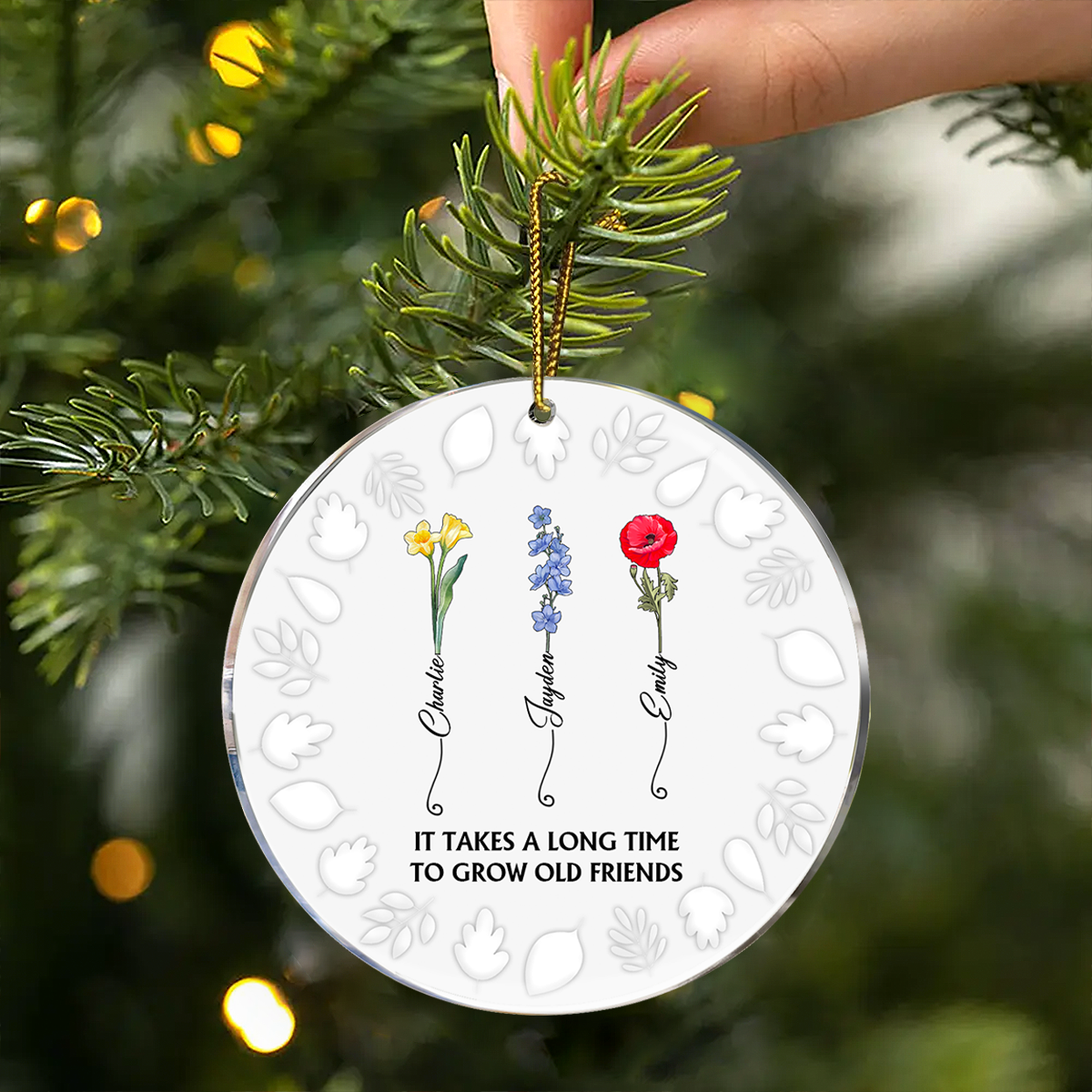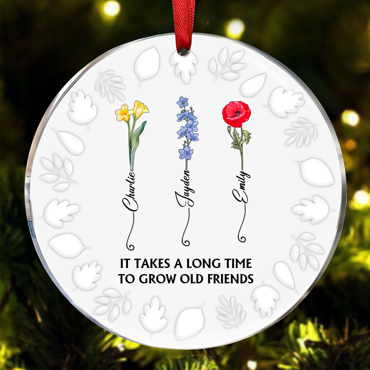 Birth Flower Grow An Old Friend - 3D Embossed Effect Printed Ornament, Personalized Circle Acrylic Ornament