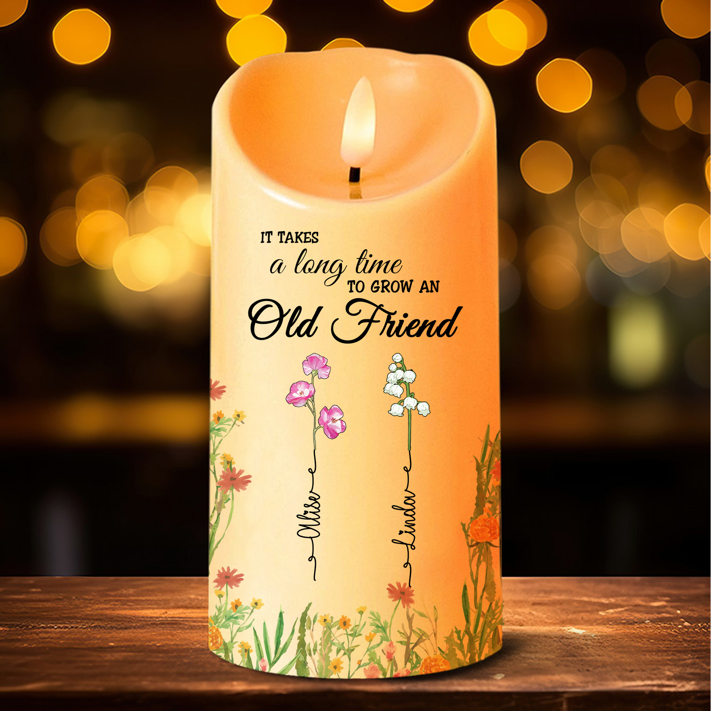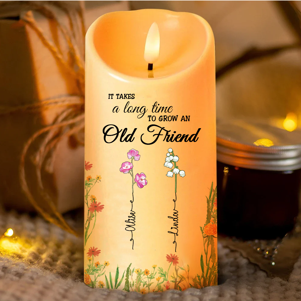Birth Flower Grow An Old Friend - Personalized Flameless LED Candle