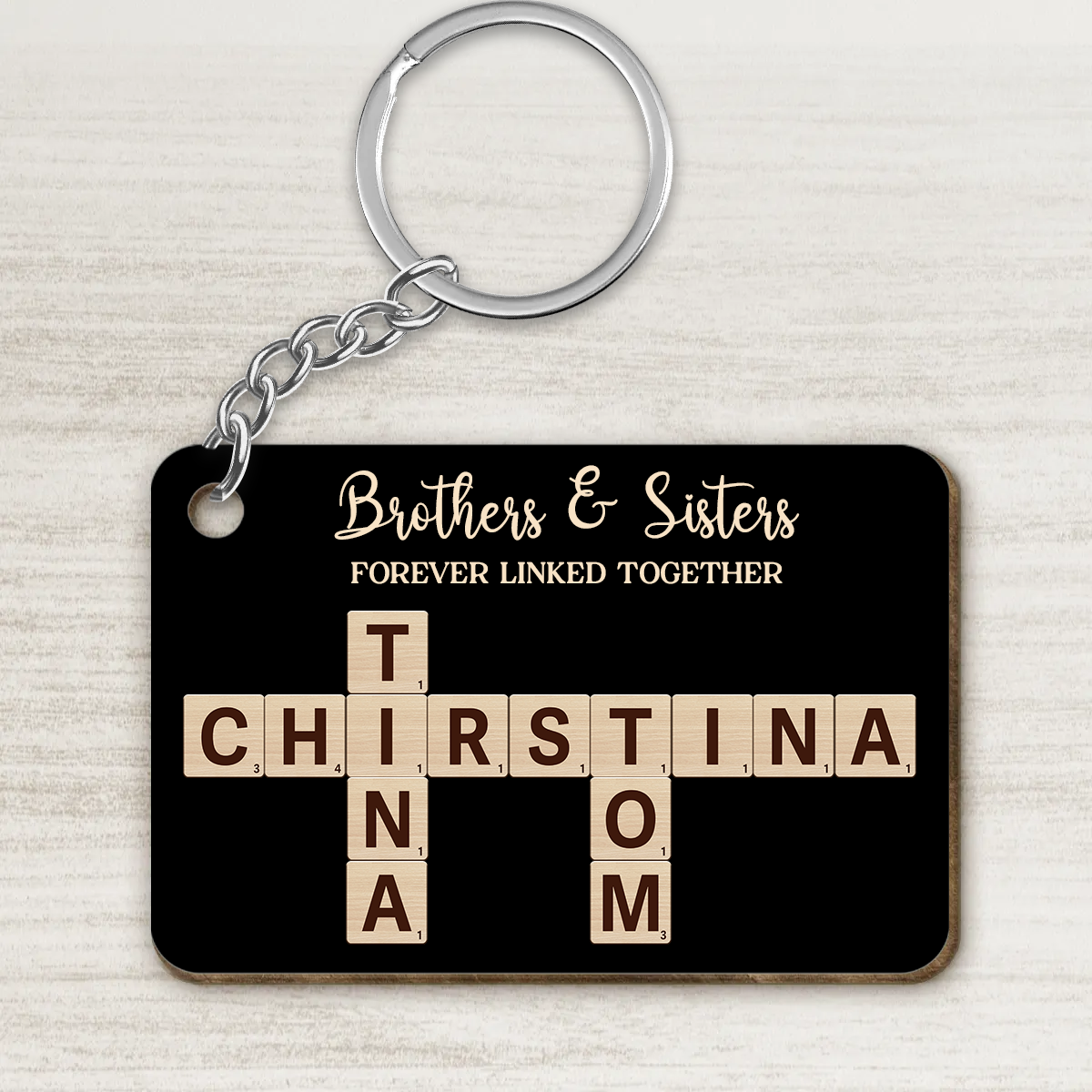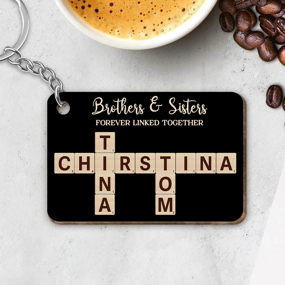 Brothers & Sisters Forever Linked Together Crossword Puzzle Art Personalized Wooden Keychain, Christmas Gift For Brothers, Sisters, Siblings, Family