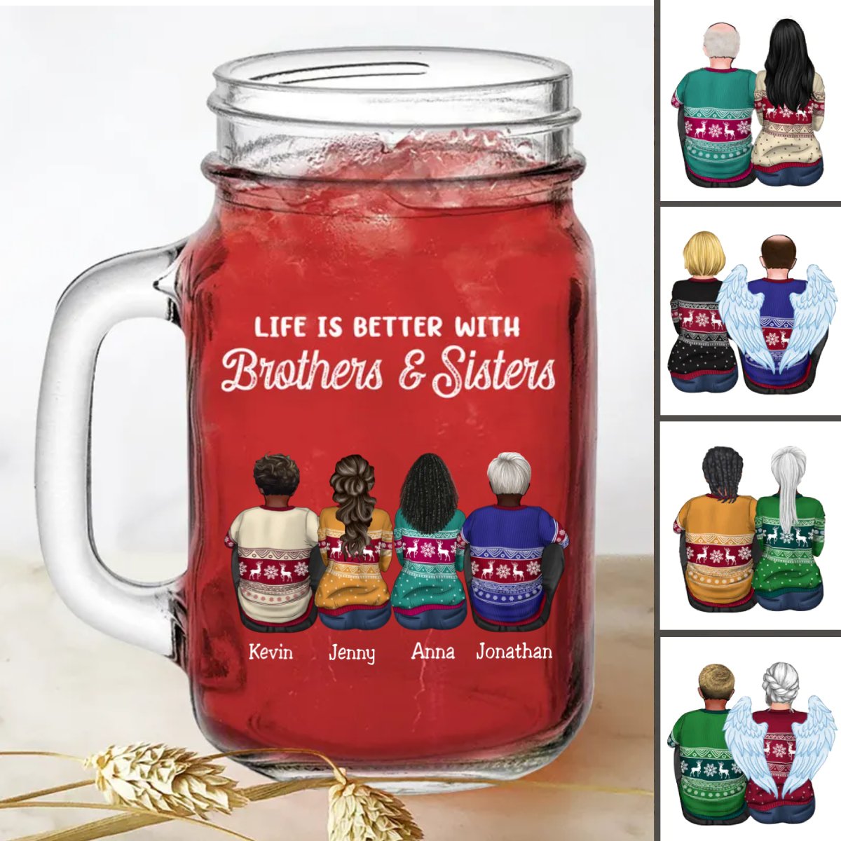 Brothers & Sisters - Life Is Better With Brothers & Sisters - Personalize Drinking Jar (TB)