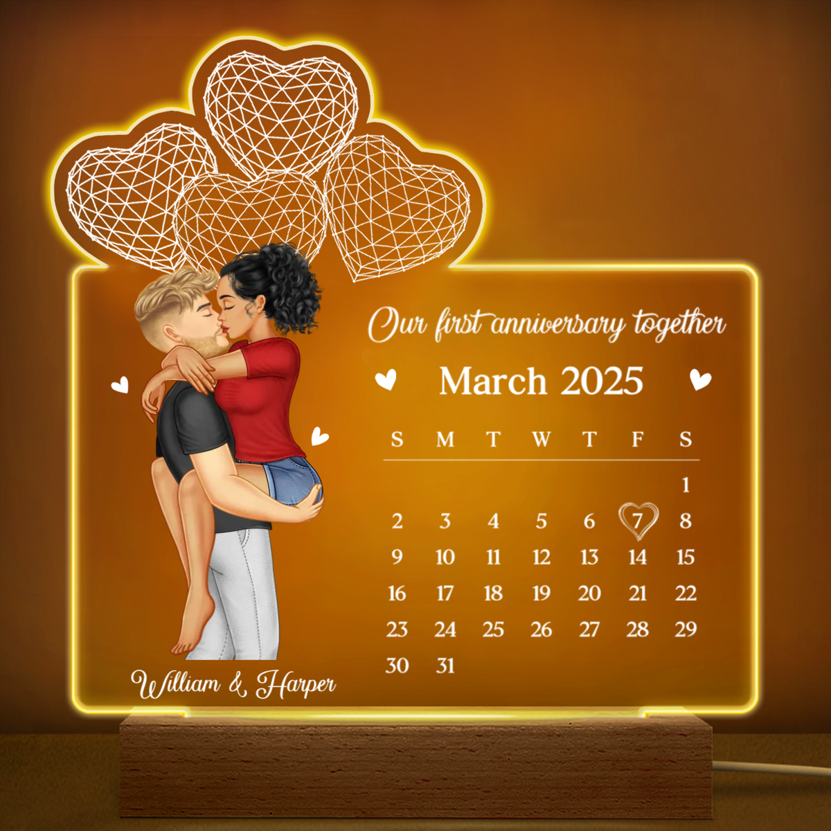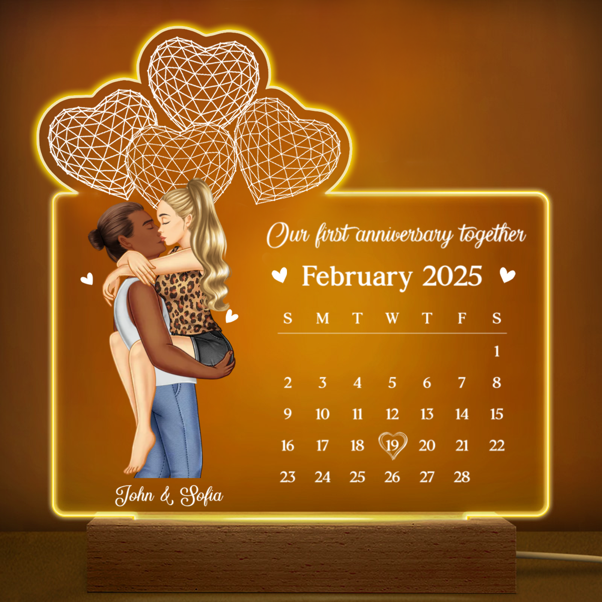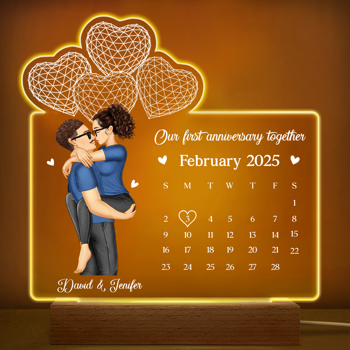 Calendar Couple Our First Anniversary Together - Personalized 3D Led Light Wooden Base