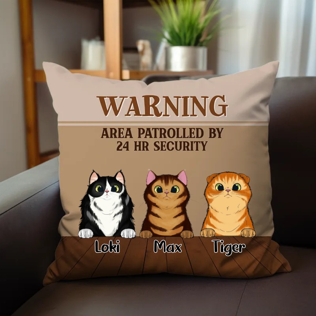 Cat Lover - Warning Area Patrolled 24 Hour Security - Personalized Pillow
