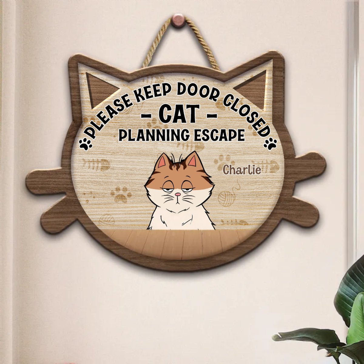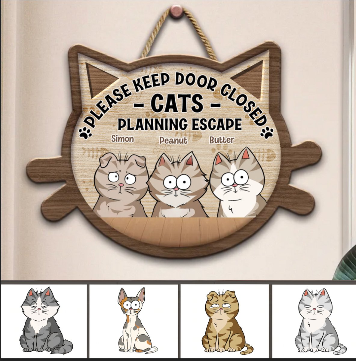 Cat Lovers - Cats Planning Escape - Personalized Shaped Wood Sign