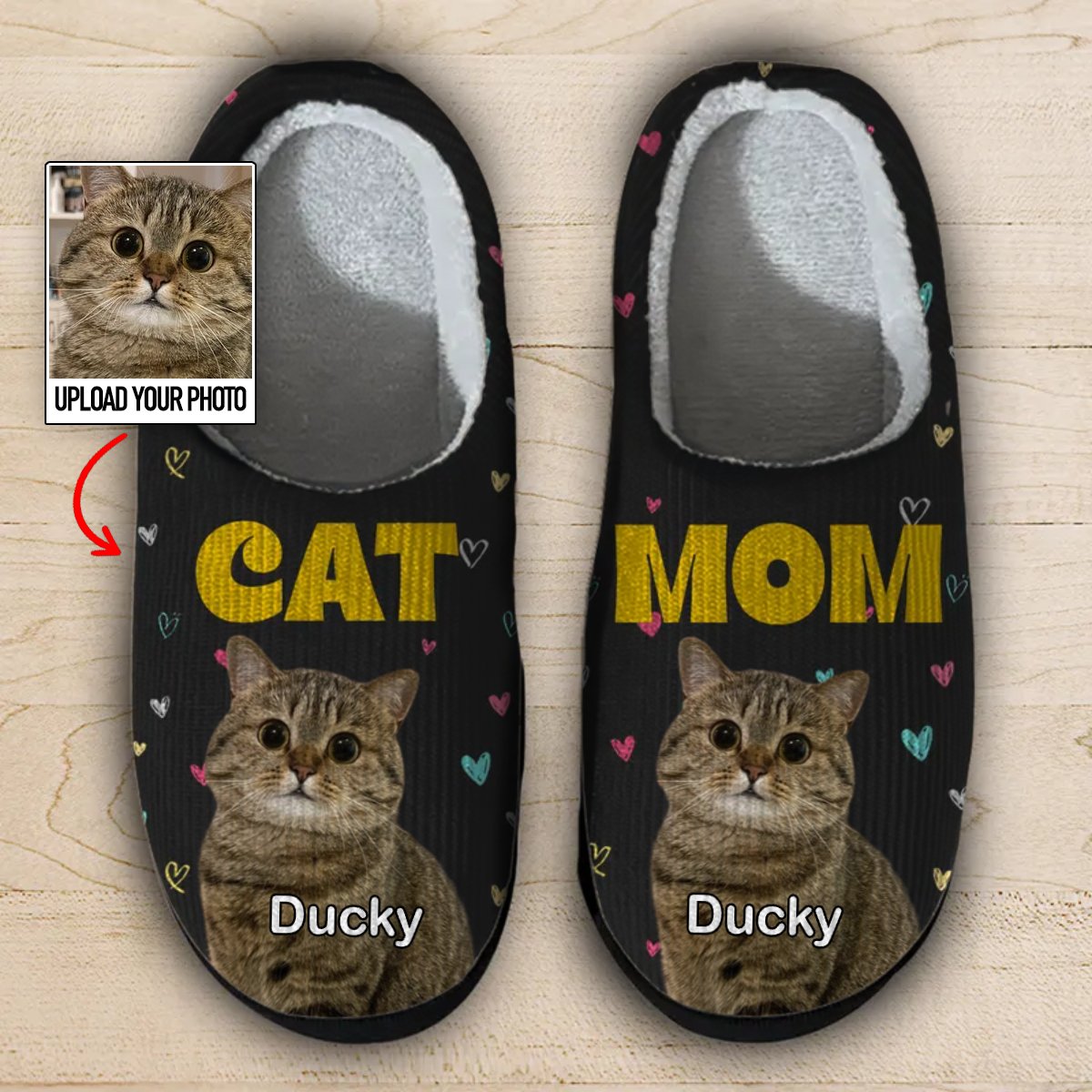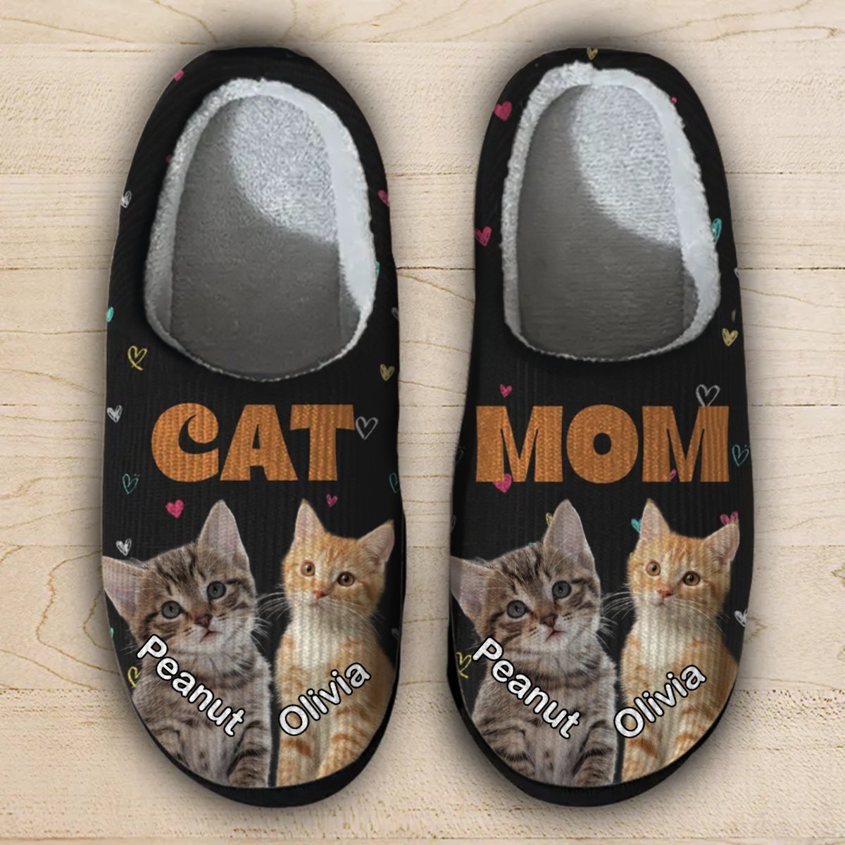 Cat Lovers - Custom Photo Cat Mom - Personalized Fluffy Slippers (HJ)
