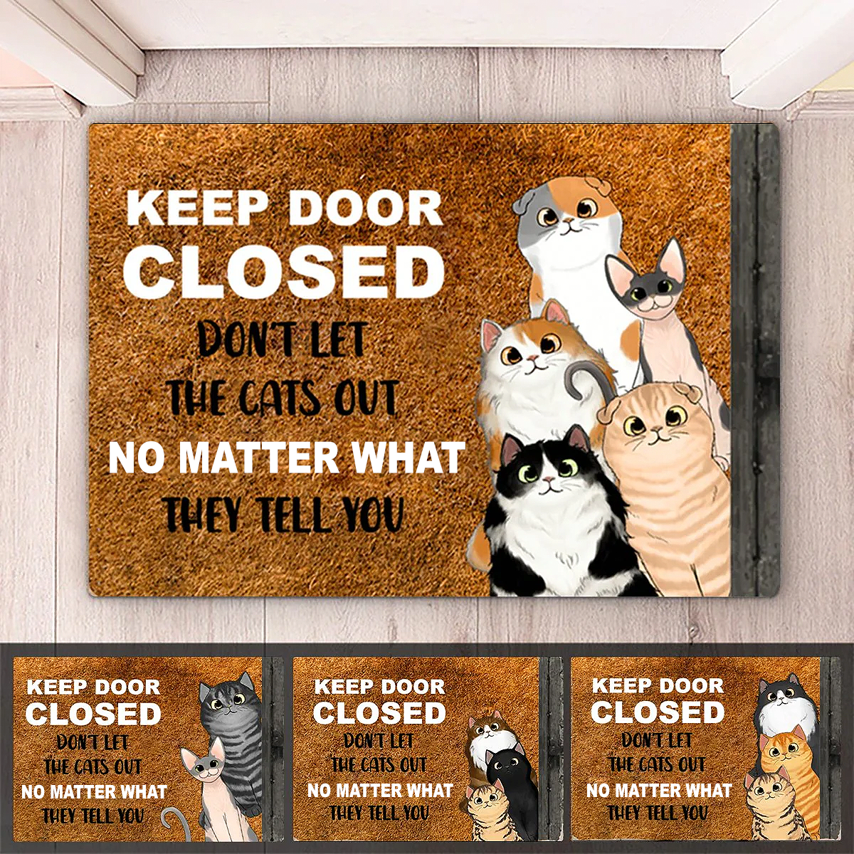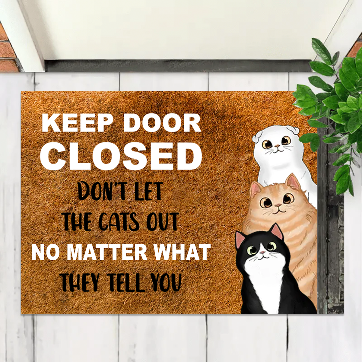 Cat Lovers - Keep Door Closed Don't Let The Cats Out - Personalized Doormat (Ver 2 )