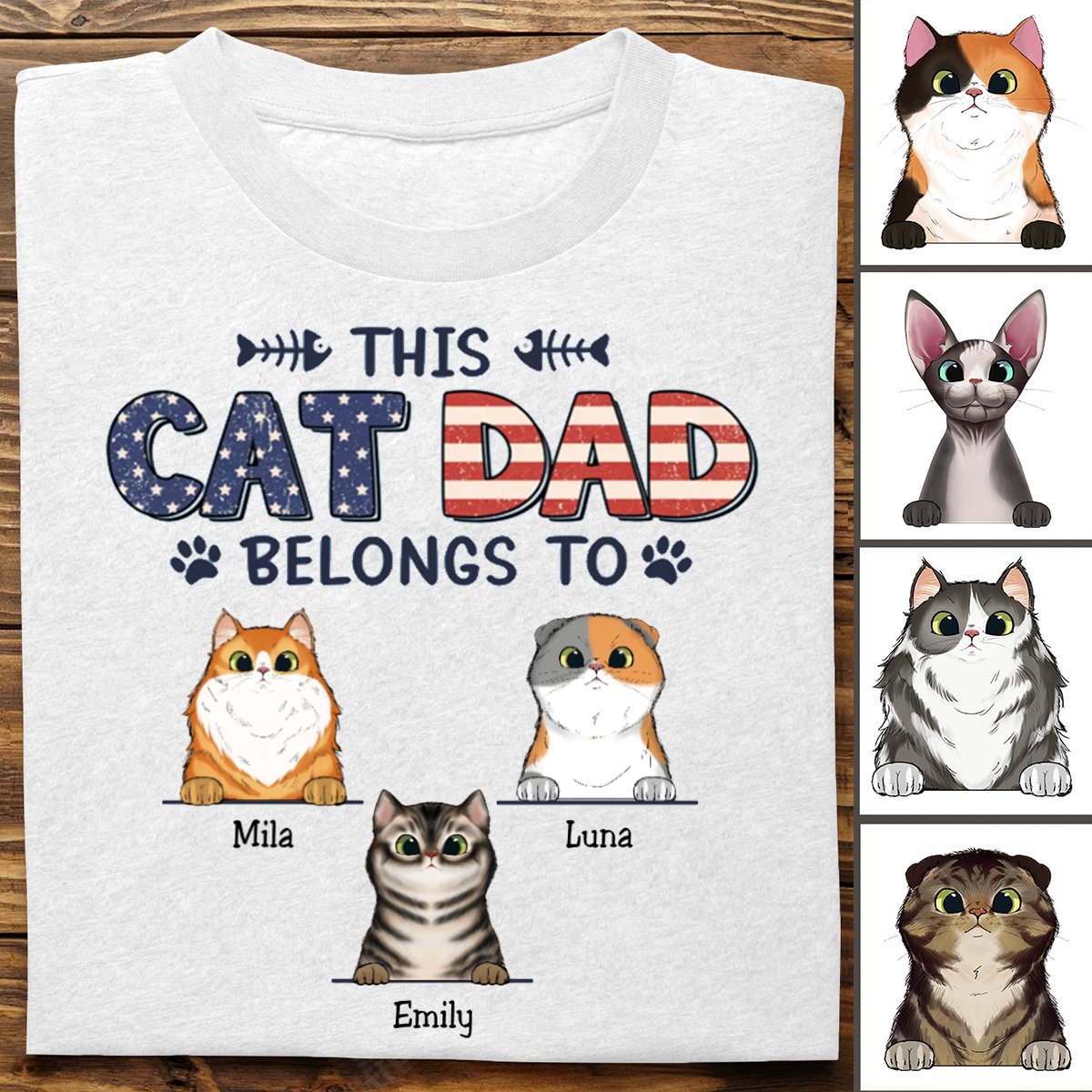 Cat Lovers - This Cat Dad Belongs To - Personalized T-shirt(NV)