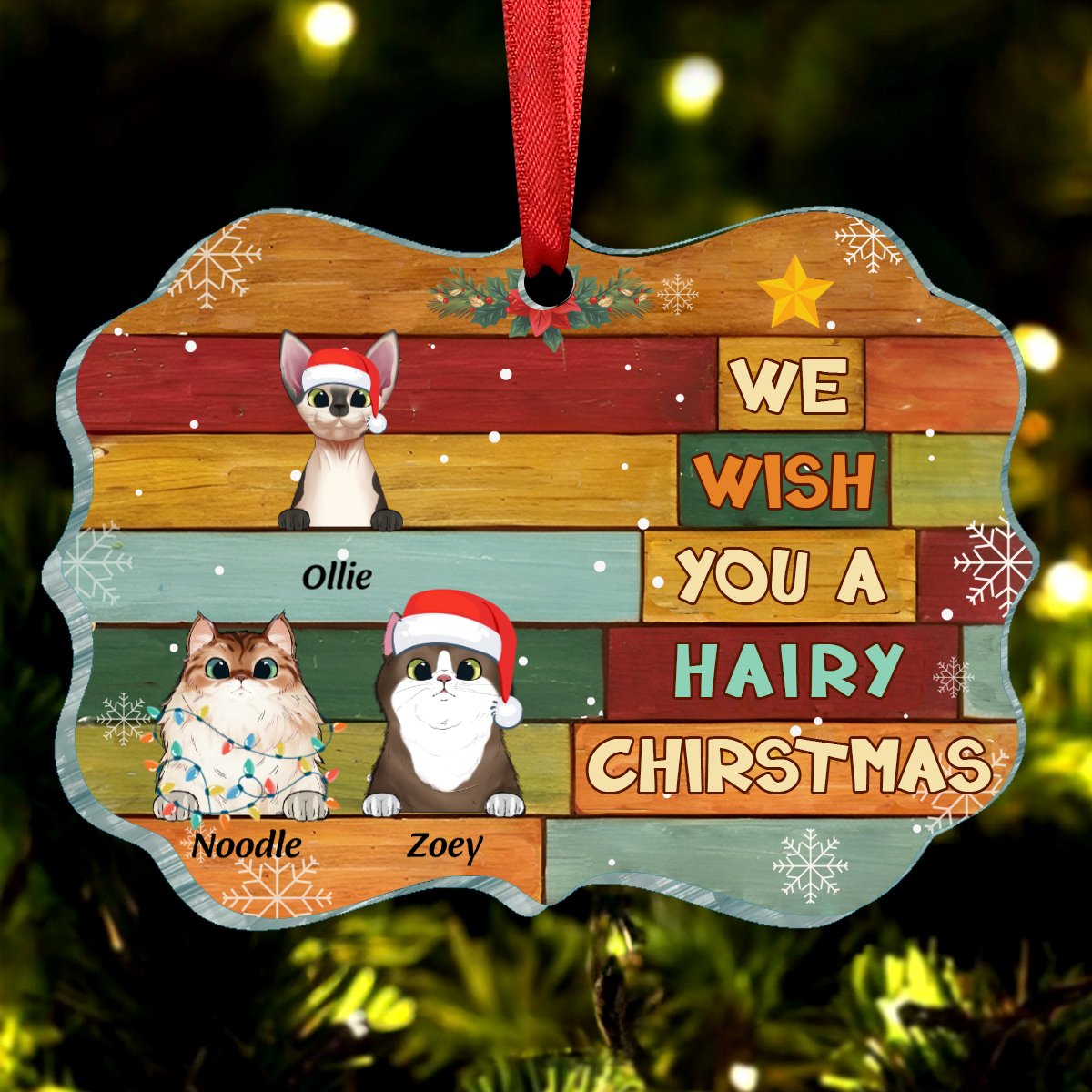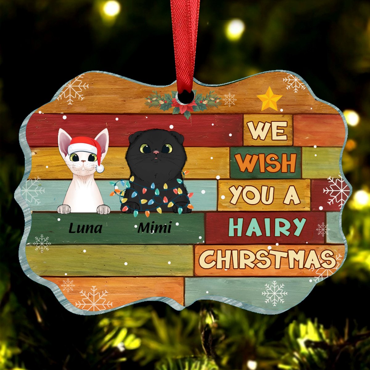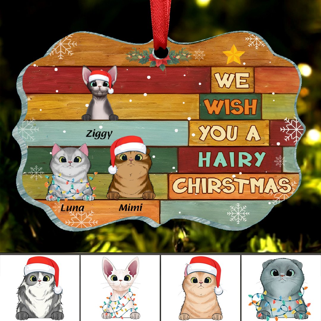 Cat Lovers - We Wish You A Hairy Christmas - Personalized Christmas Ornament (LH)