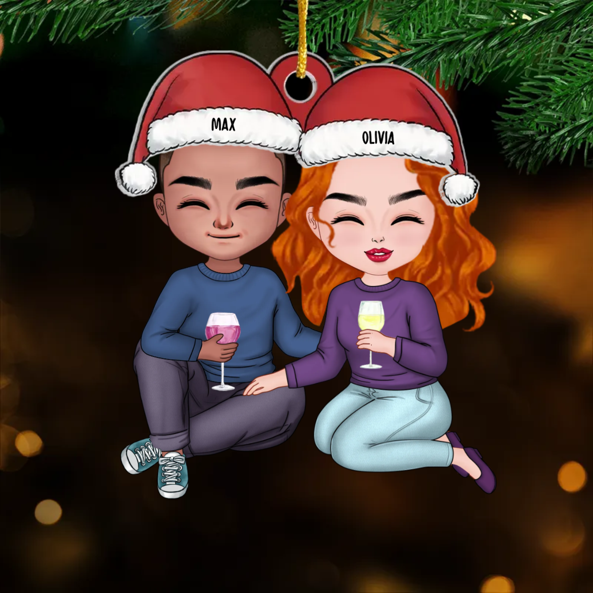 Cheers To A Merry Christmas - Couple Personalized Custom Ornament - Wood, Acrylic Custom Shaped - Christmas Gift For Husband Wife, Anniversary