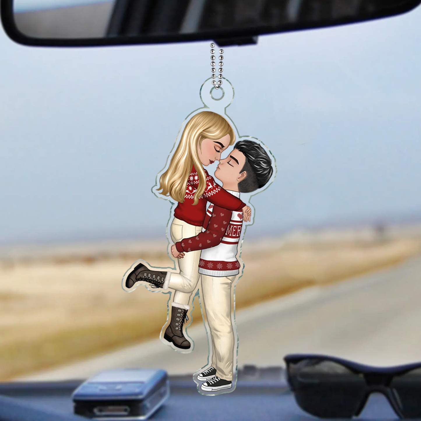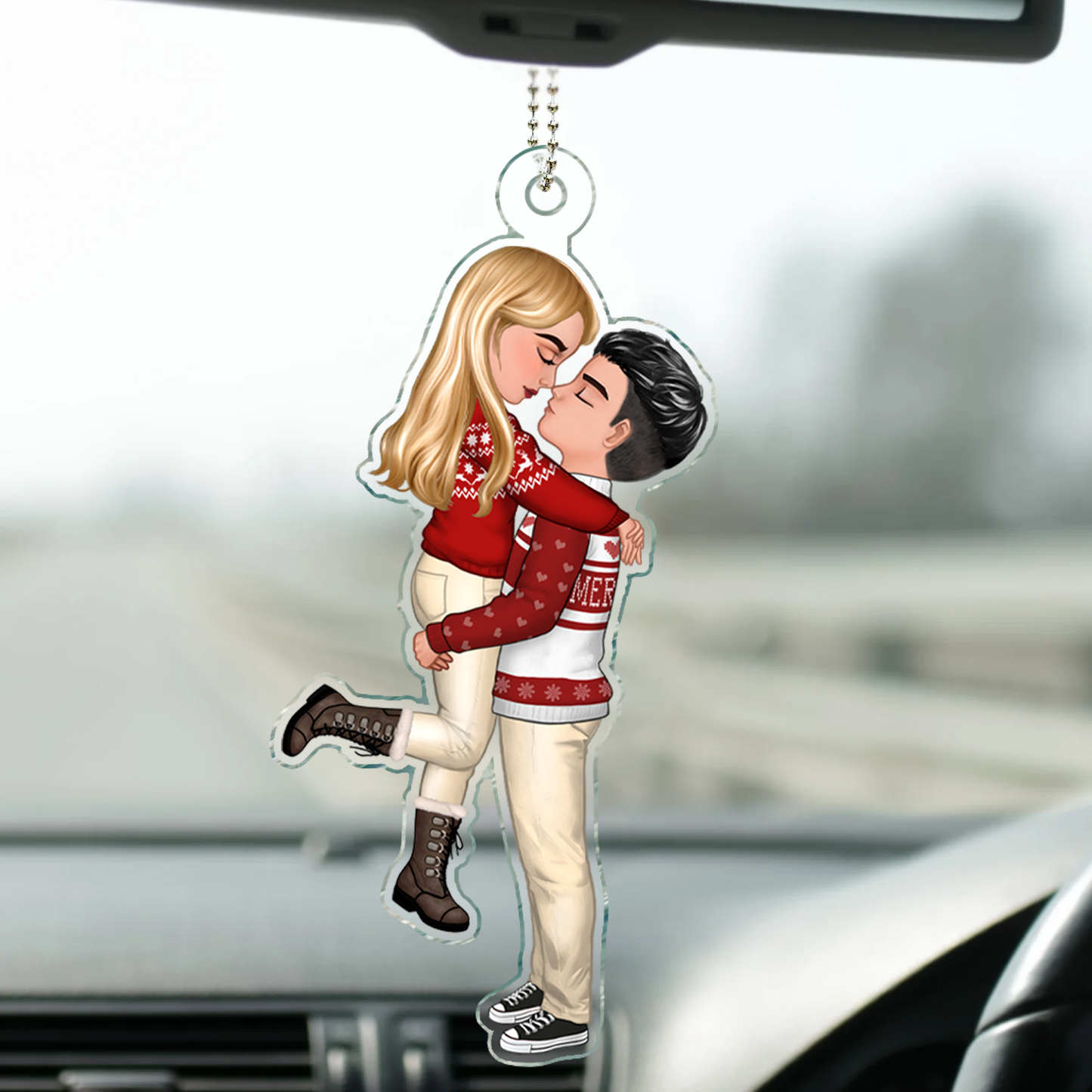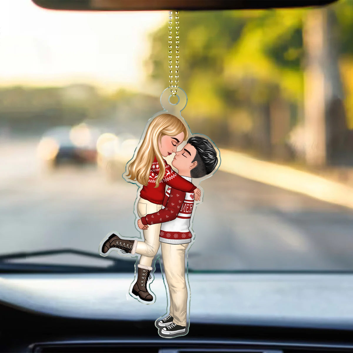Chibi Couple Kissing - Anniversary Gift For Couples - Personalized Acrylic Car Hanger
