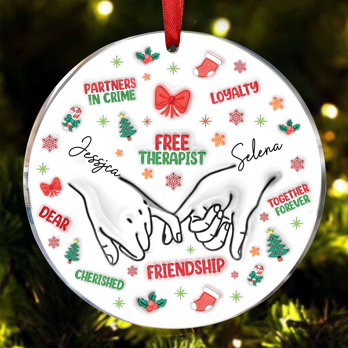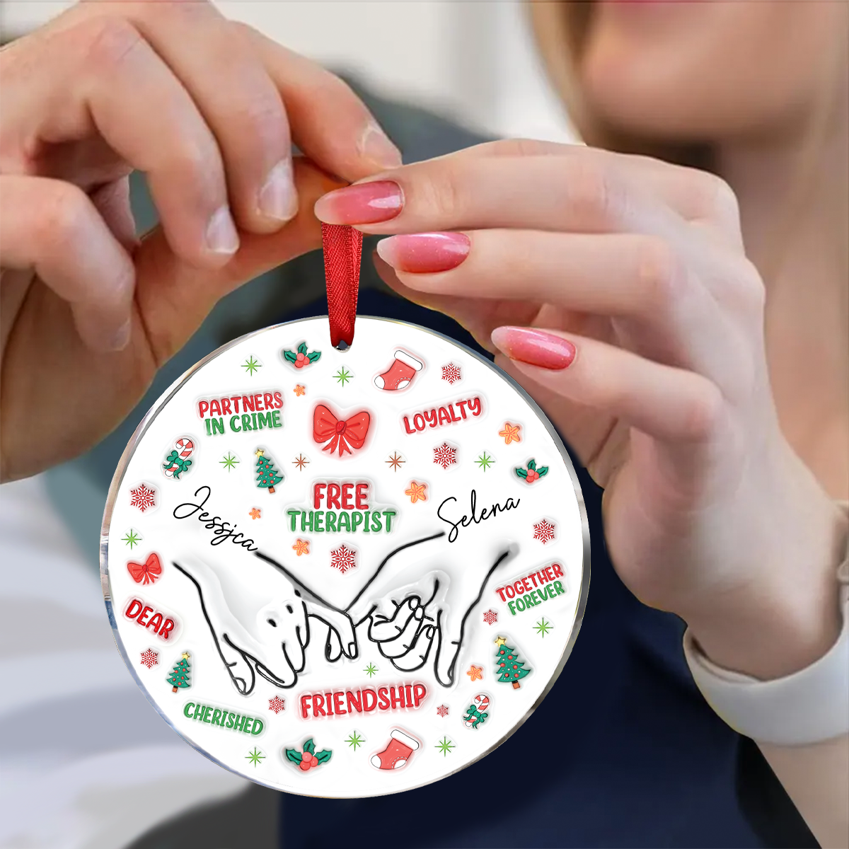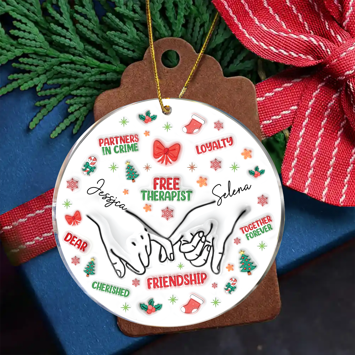 Christmas Besties Holding Hands Our Friendship Is The Greatest Gift - 3D Inflated Effect Printed Ornament, Personalized Circle Acrylic Ornament