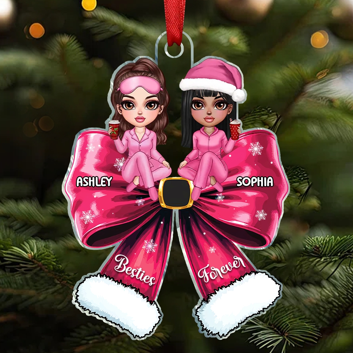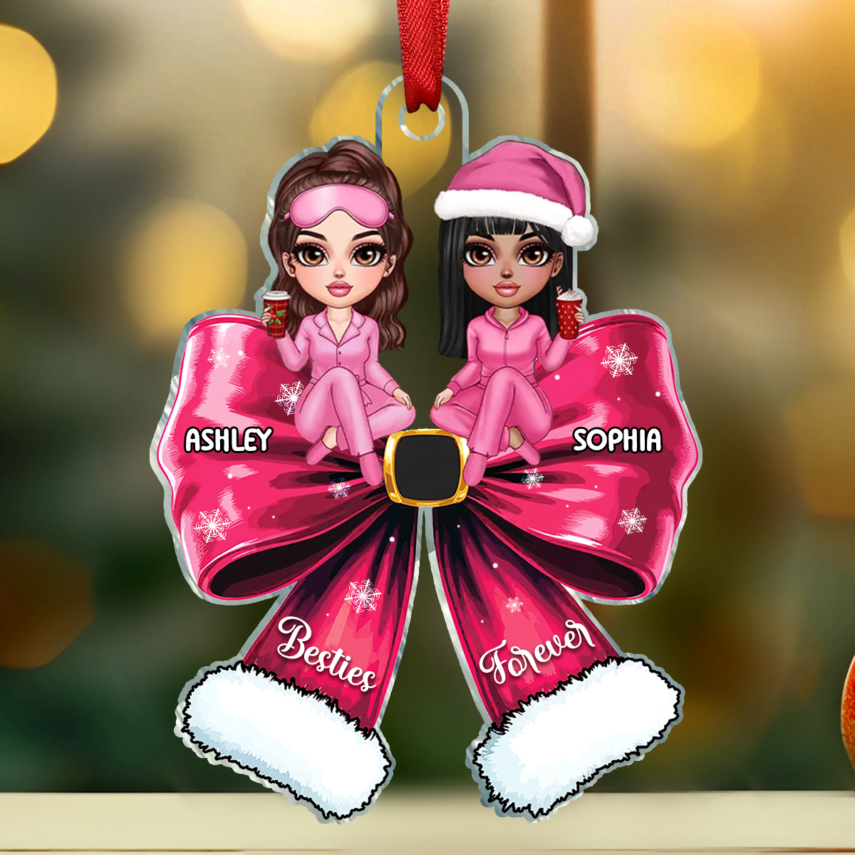 Christmas Coquette Bow Best Friends Personalized Acrylic Ornament, Christmas Gift For Besties