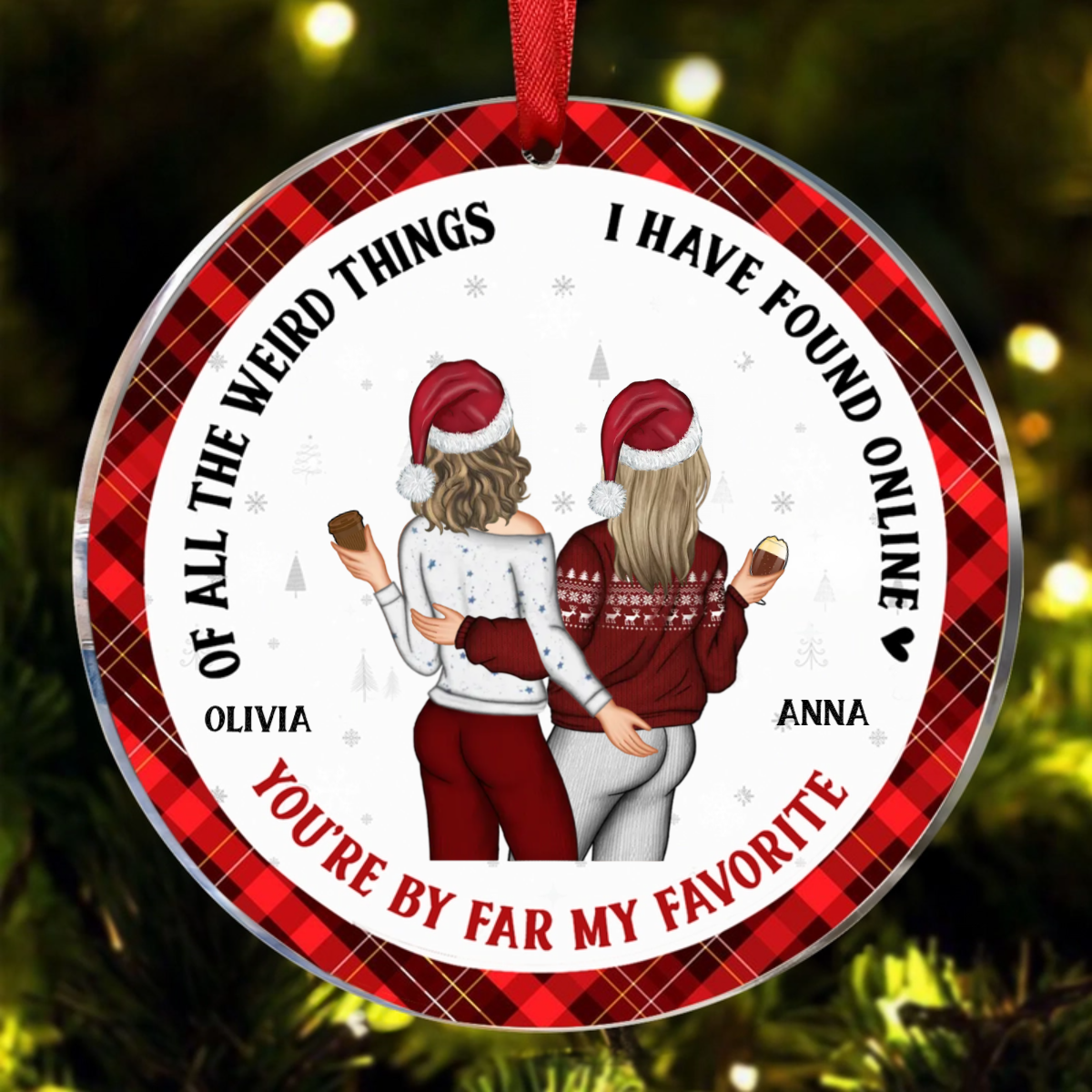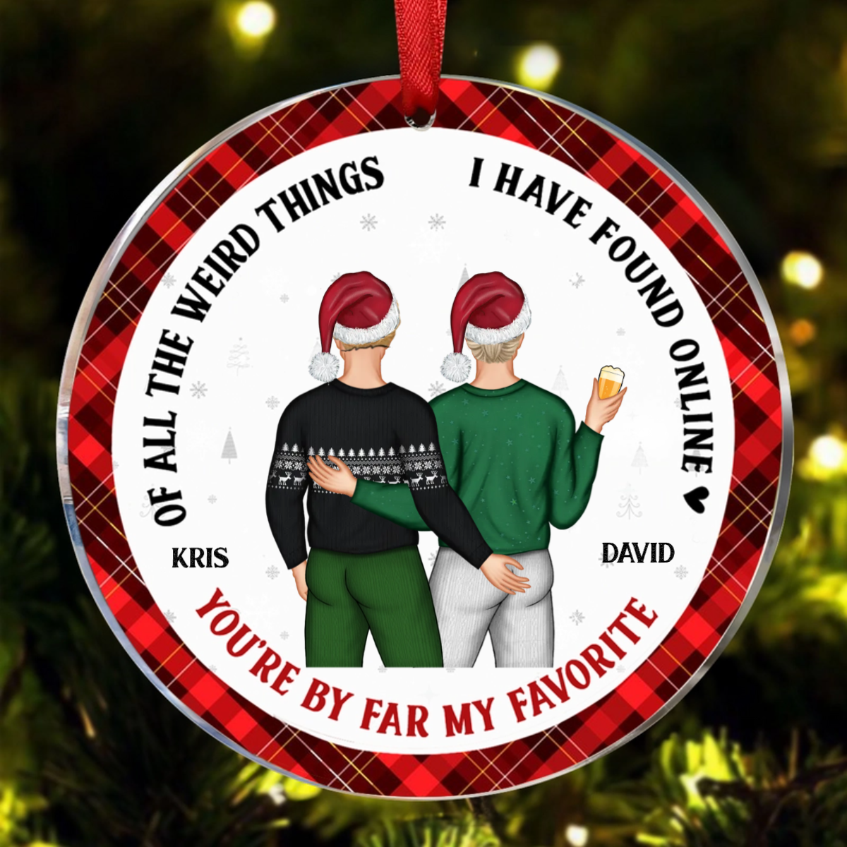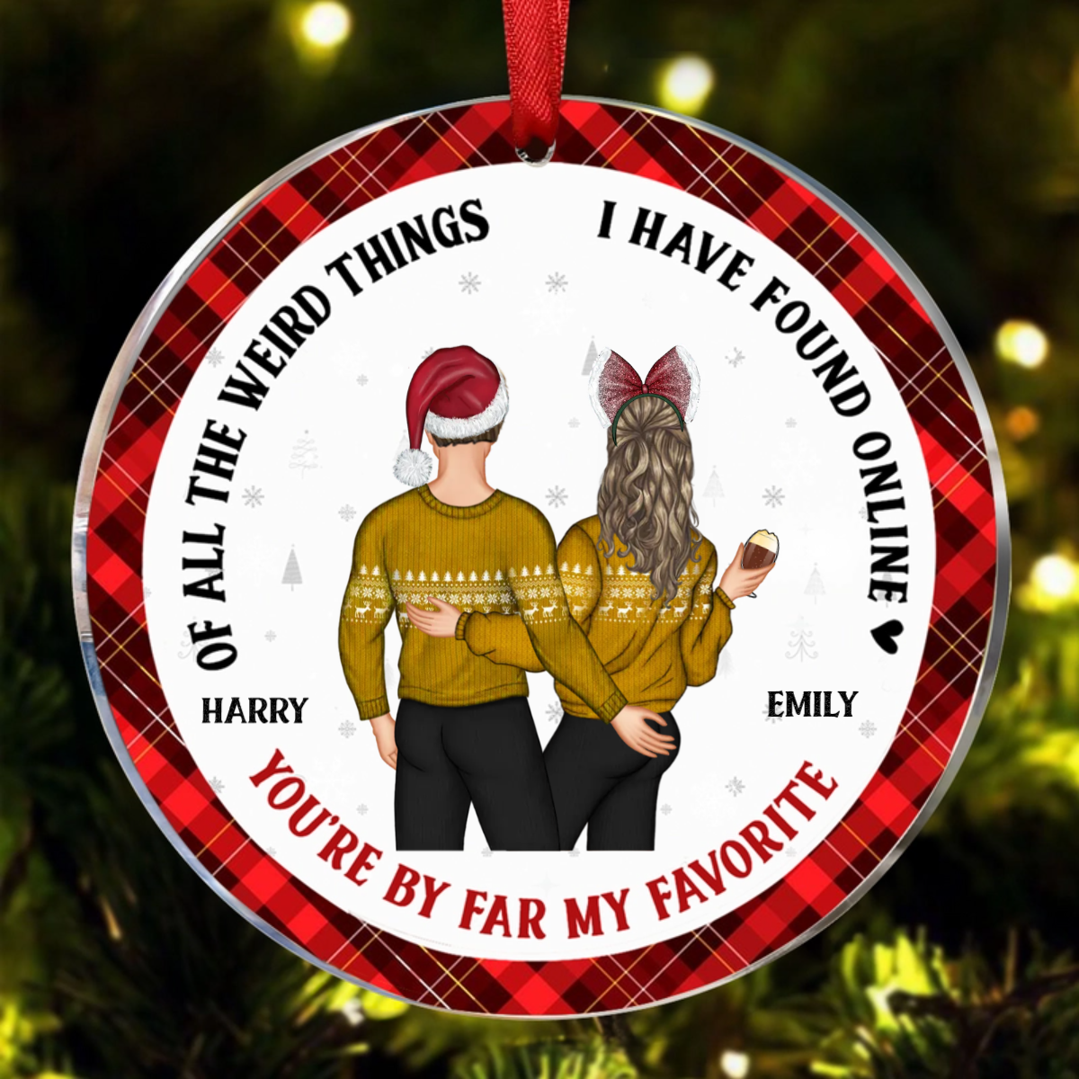 Christmas Couple Back Side You Are My Favorite By Far - Gift For Couples - Personalized Circle Ceramic Ornament