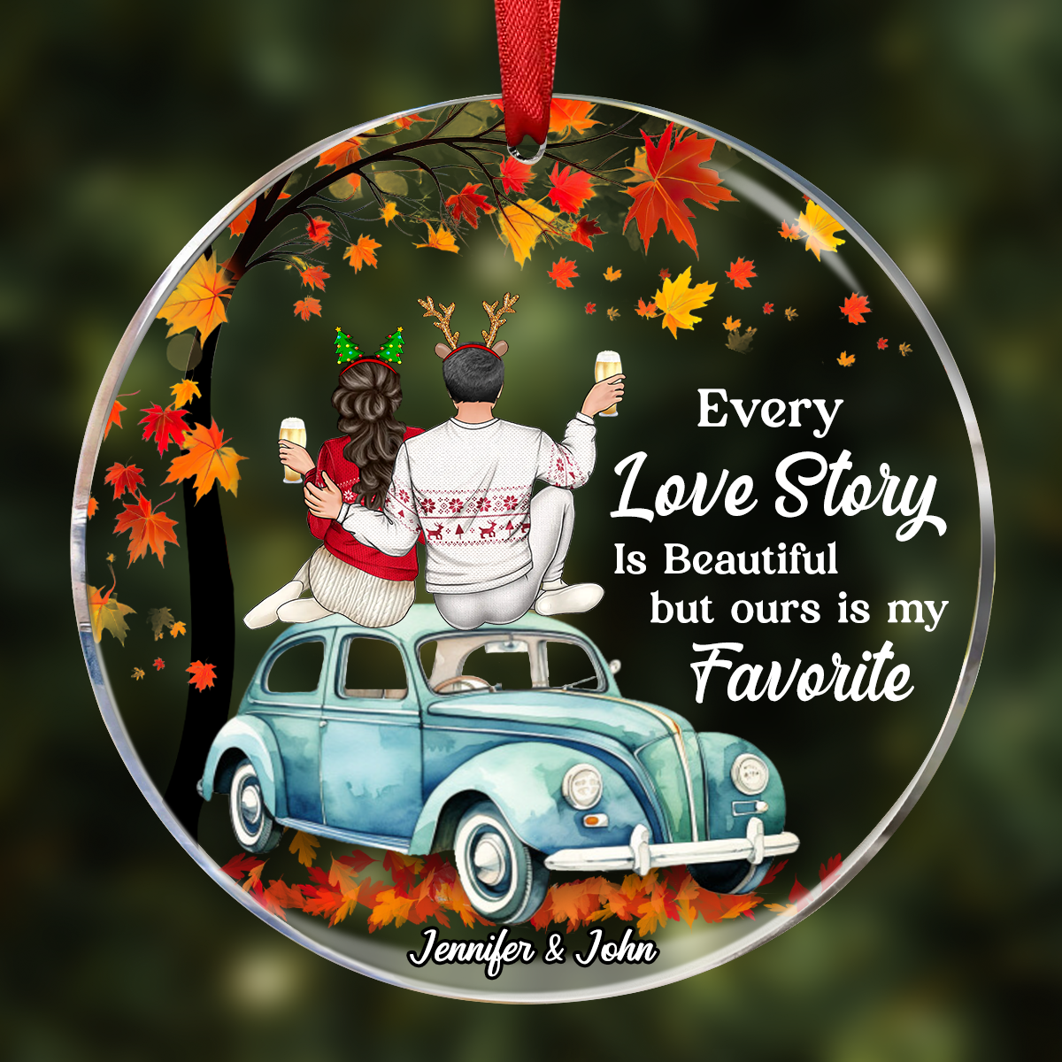 Christmas Every Love Story Is Beautiful - Personalized Circle Acrylic Ornament