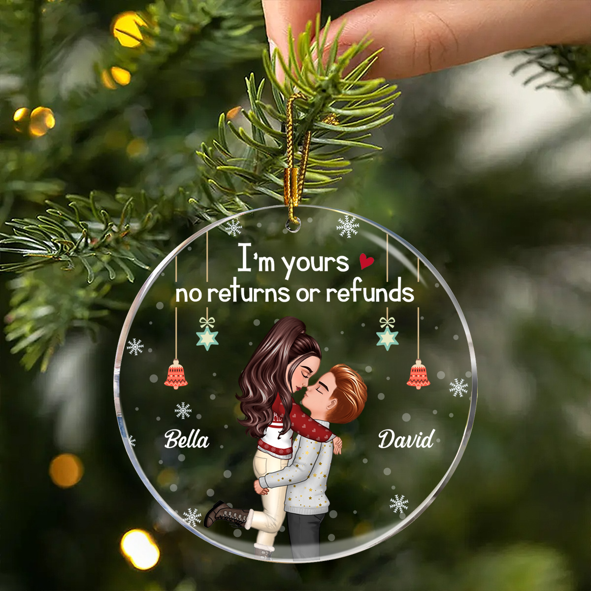 Christmas Kissing Couple I'm Yours No Returns - Personalized Acrylic Ornament