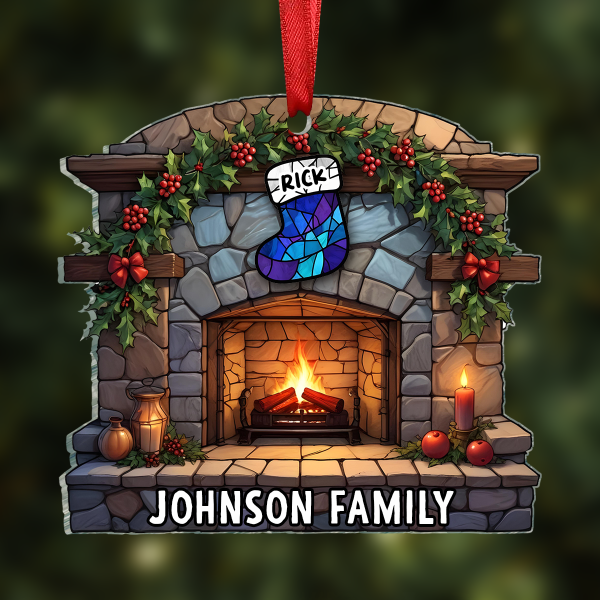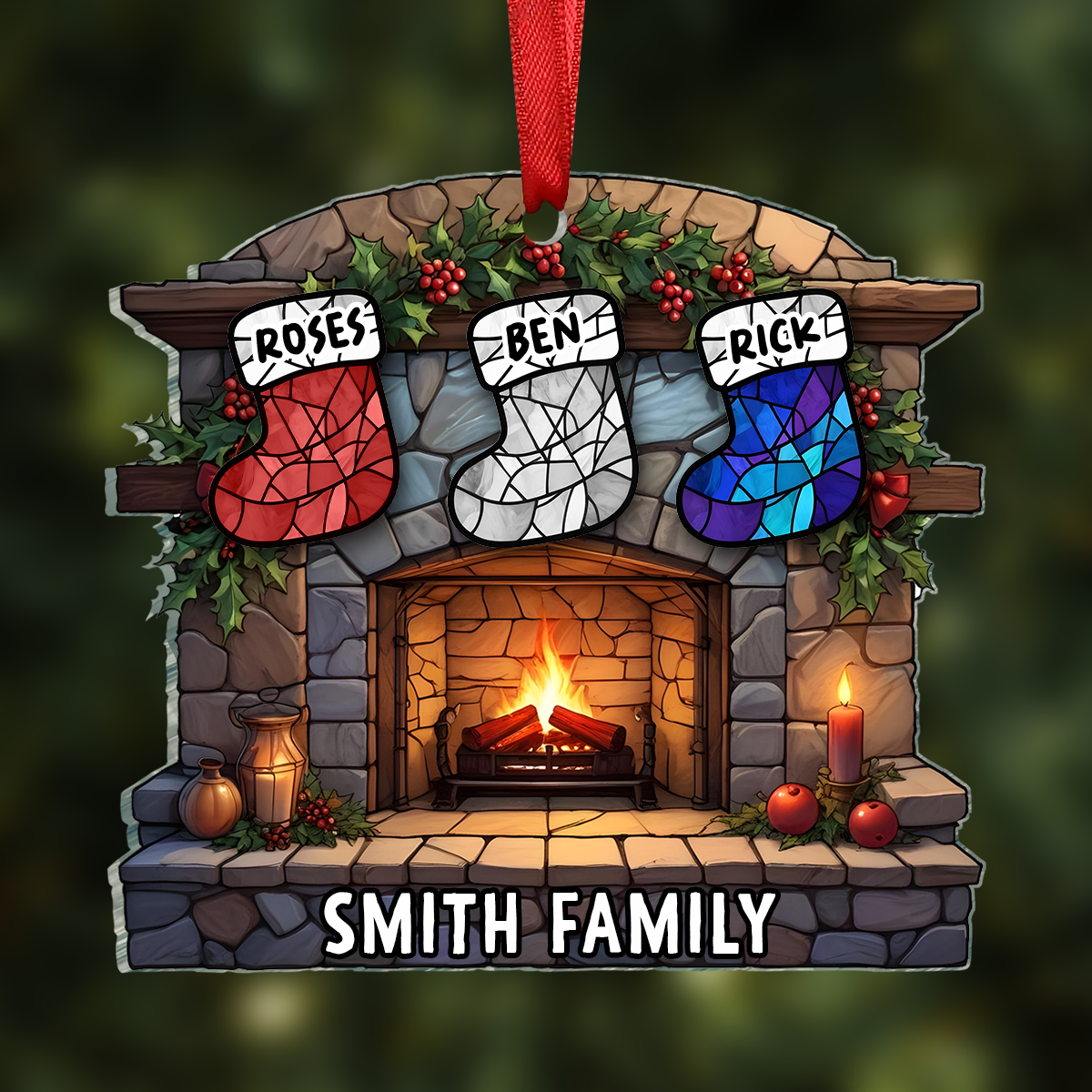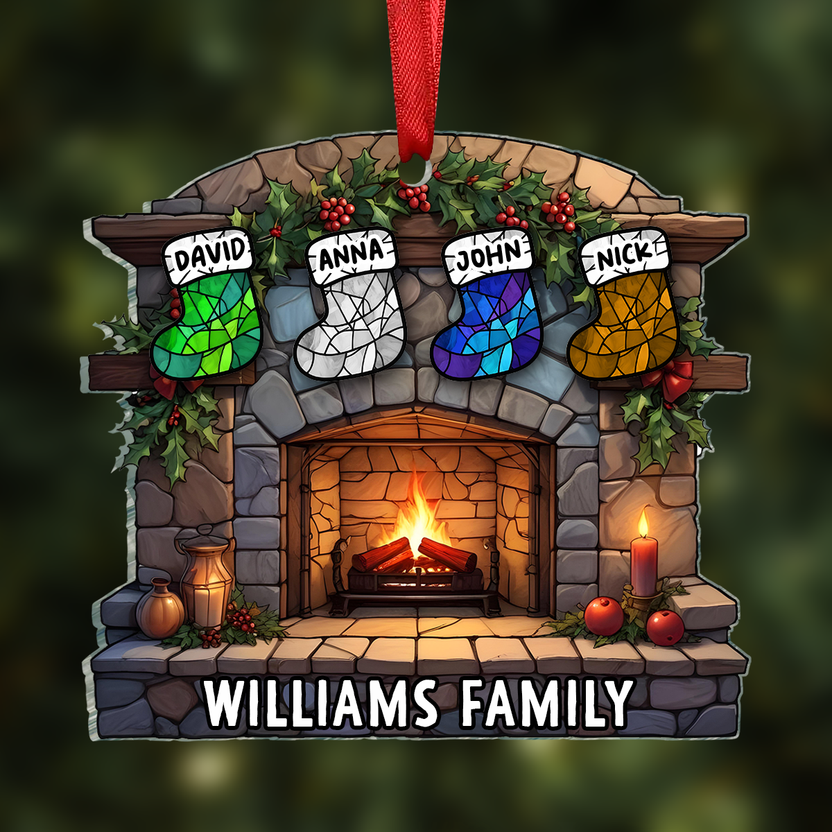 Christmas Stocking On Fireplace Family - Personalized Custom Shaped Acrylic Ornament