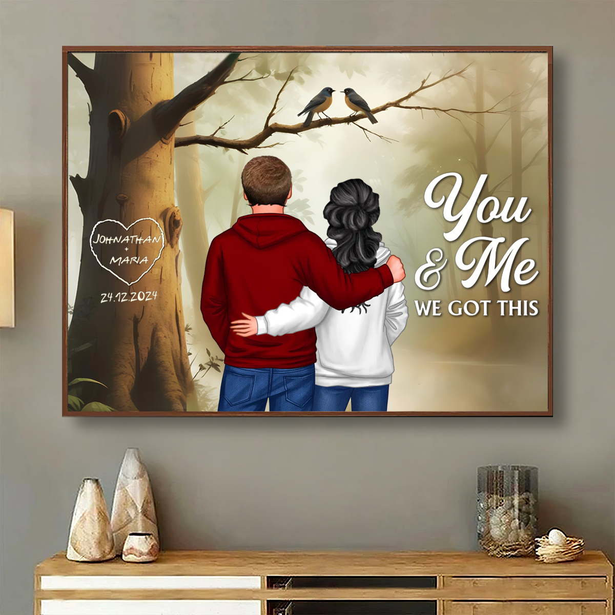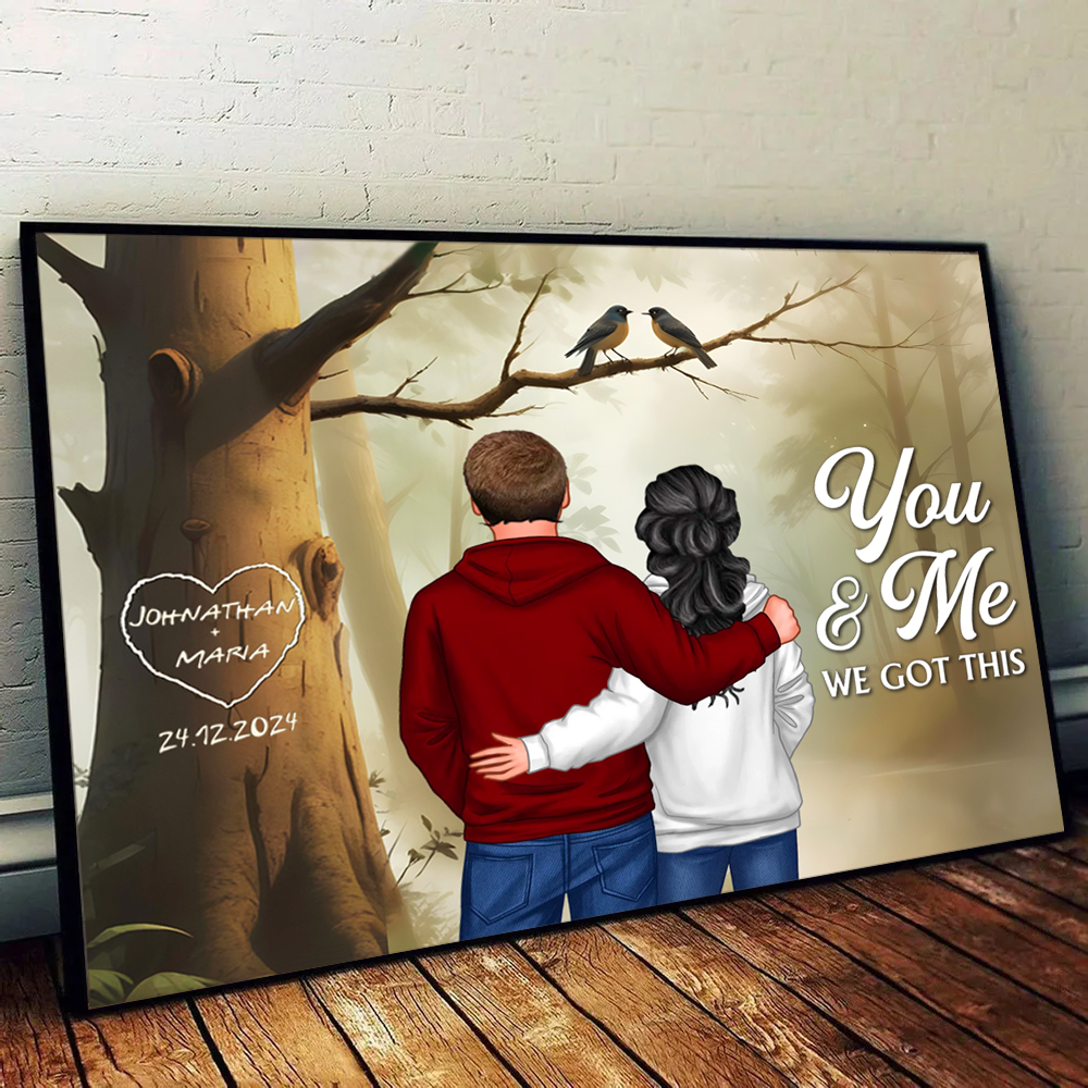 Couple Birds On Tree Personalized Poster, Anniversary, Valentine's Day Gift for him, Gift for her