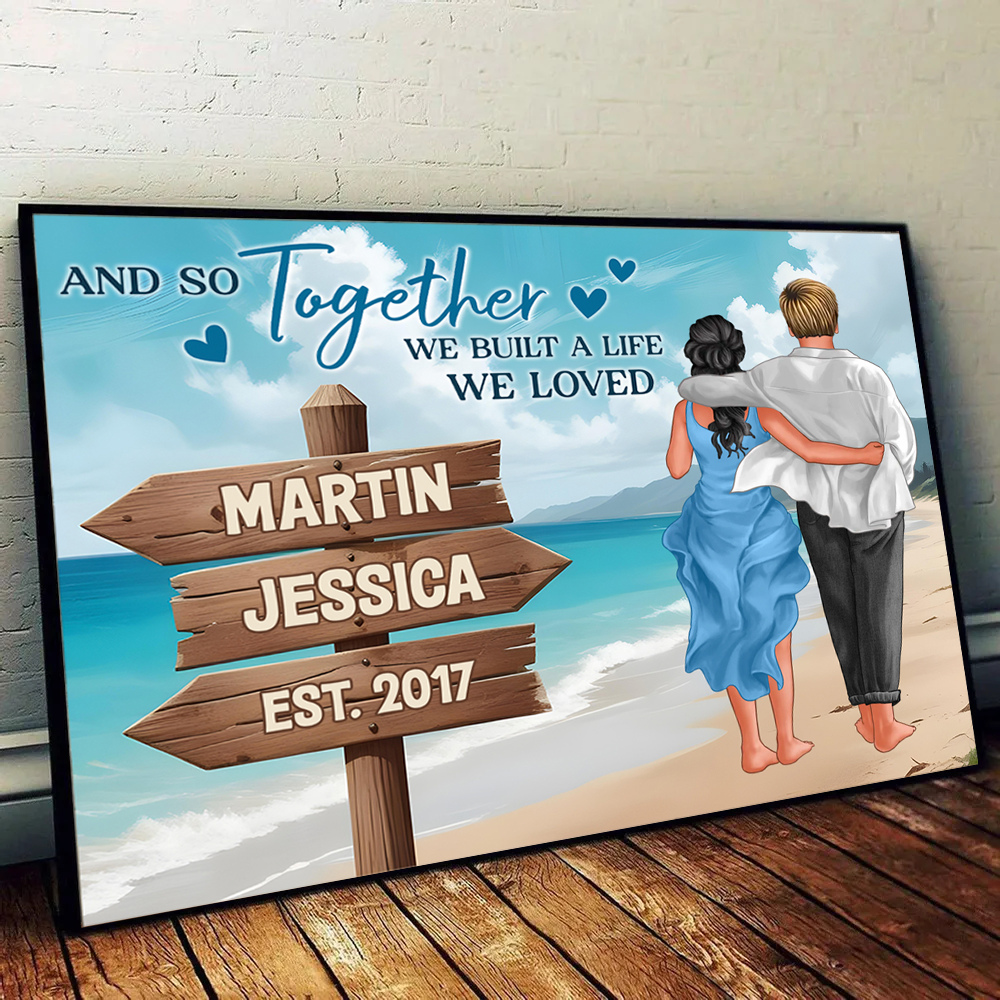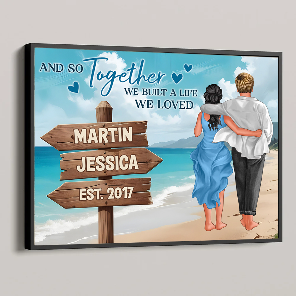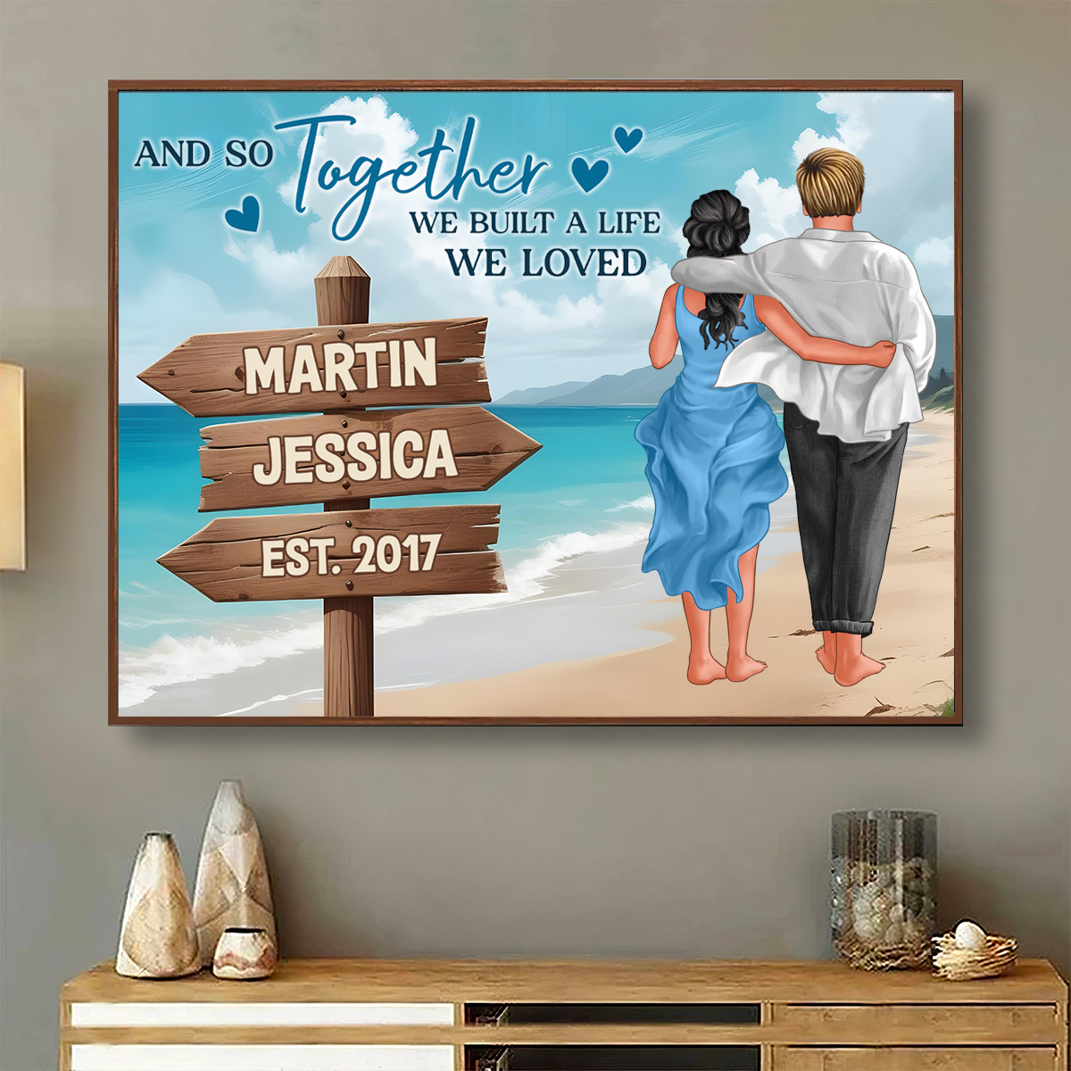 Couple Embracing And Walking On The Beach Personalized Poster, Heartfelt 2025 Valentine's Day Gift For Couple, For Him, For Her, Boyfriend, Girlfriend, Husband, Wife