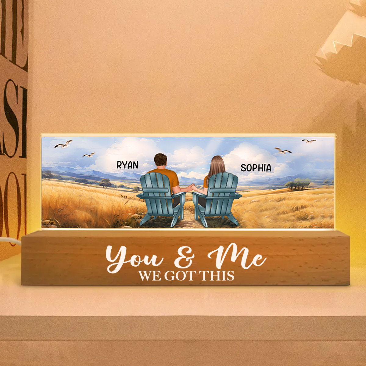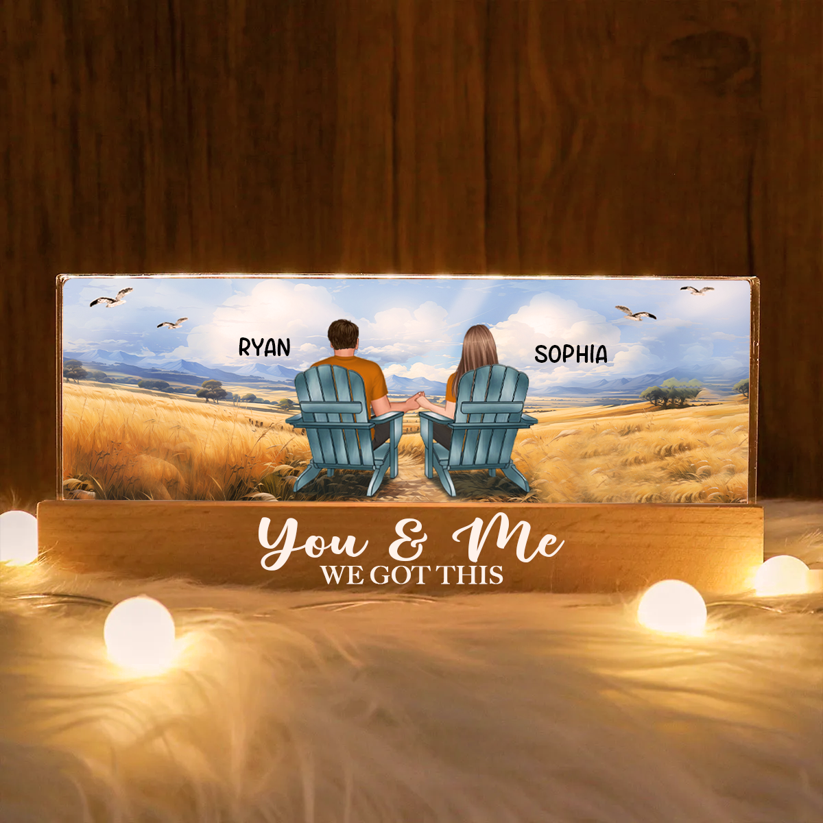Couple Sitting At Beach Retro Personalized LED Night Light, Anniversary Gift For Couple, Husband, Wife, Dad, Mom