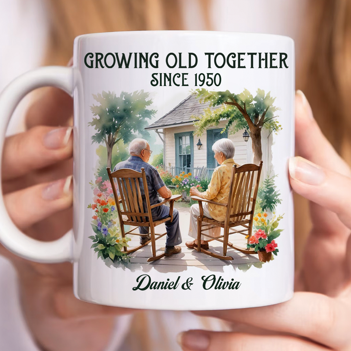 Couple Sitting On The Porch Growing Old Together Since Personalized Mug, Heartfelt Valentine's Day Gift For Couple, For Him, For Her, Husband, Wife