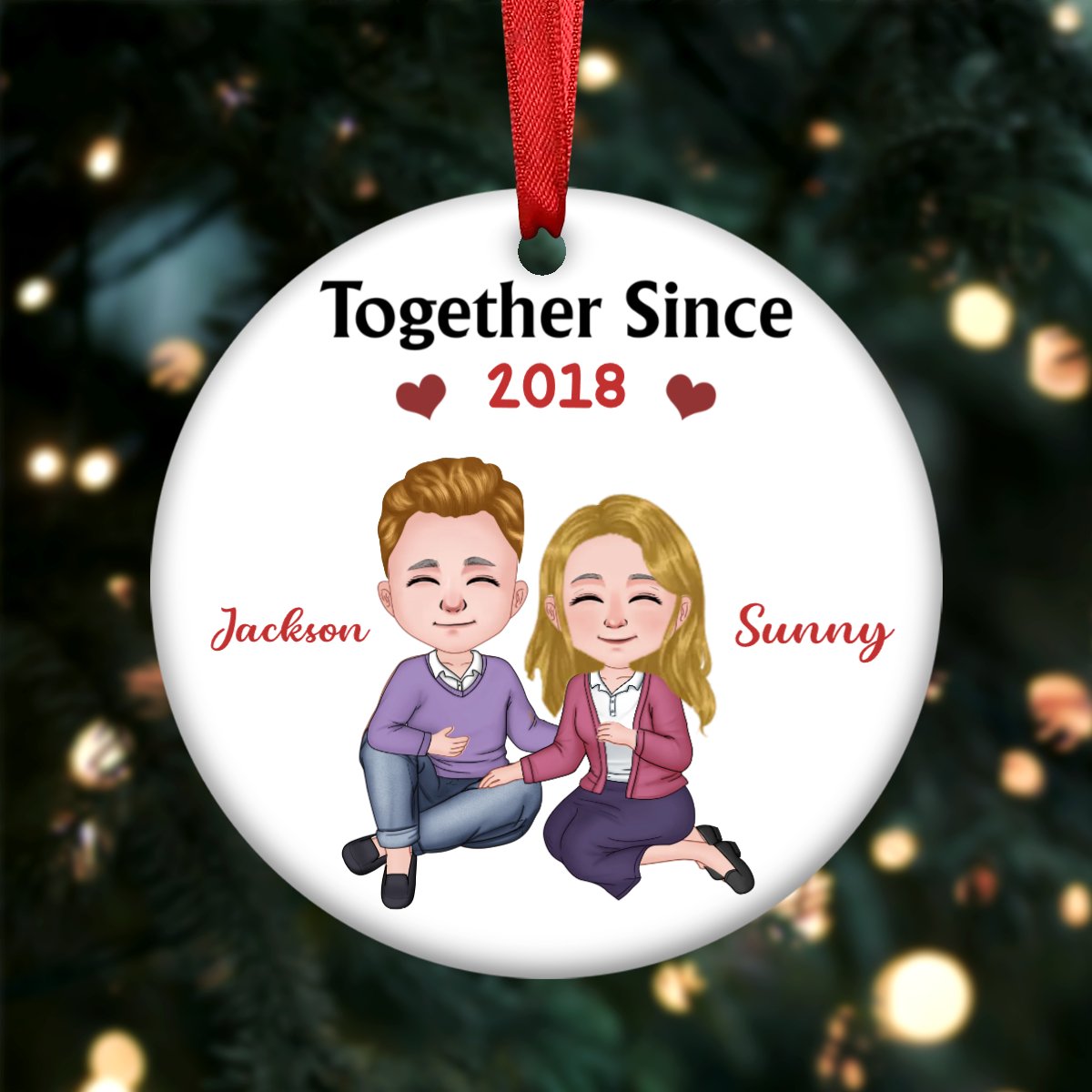 Couple - Together Since - Personalized Christmas Circle Ornament