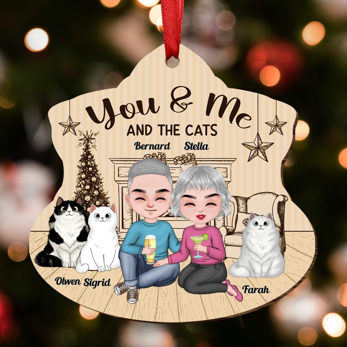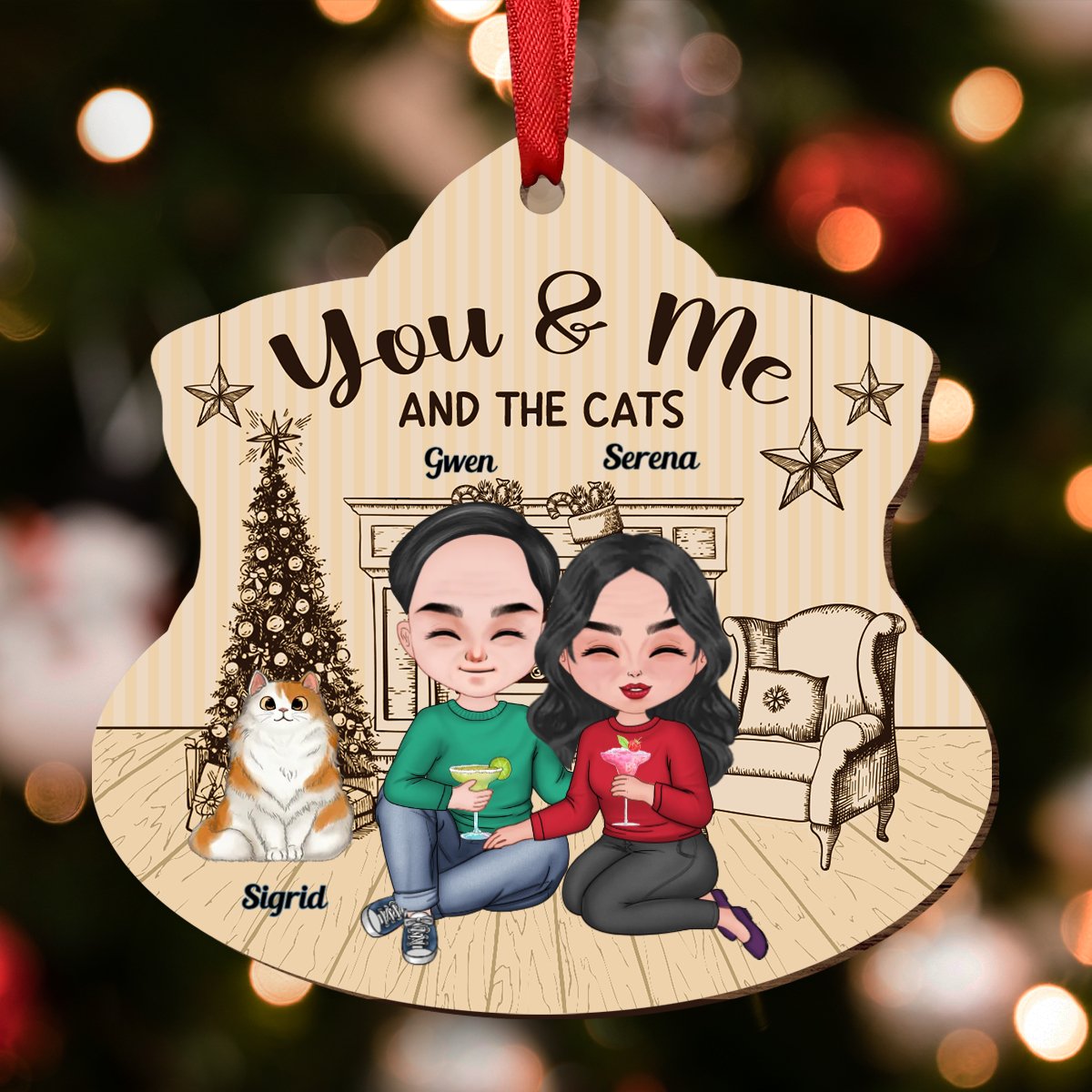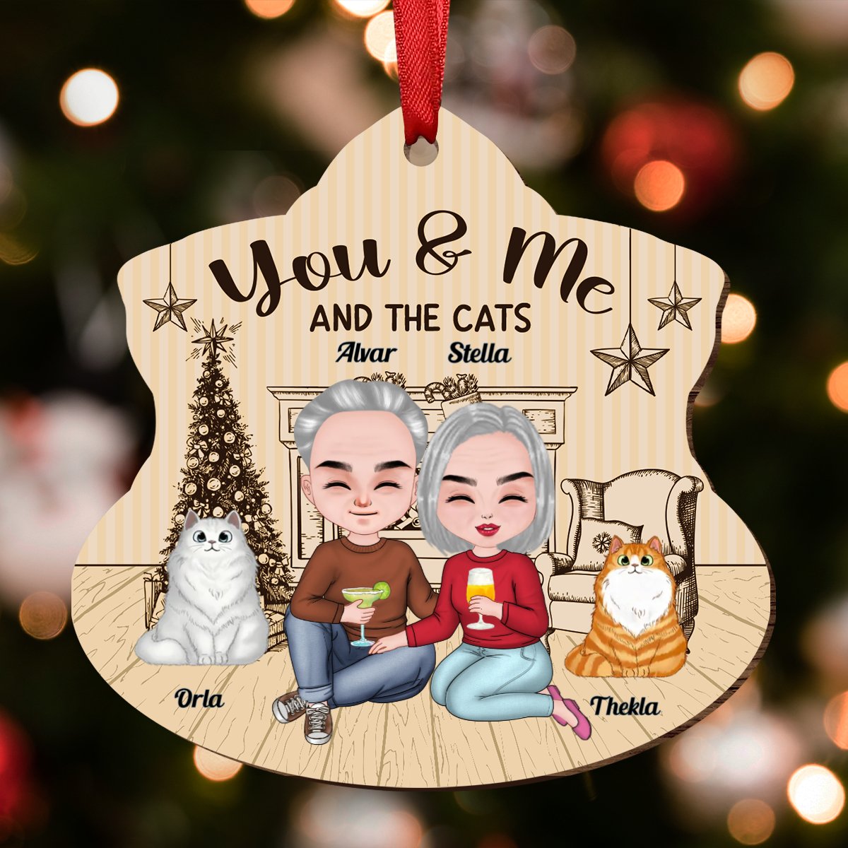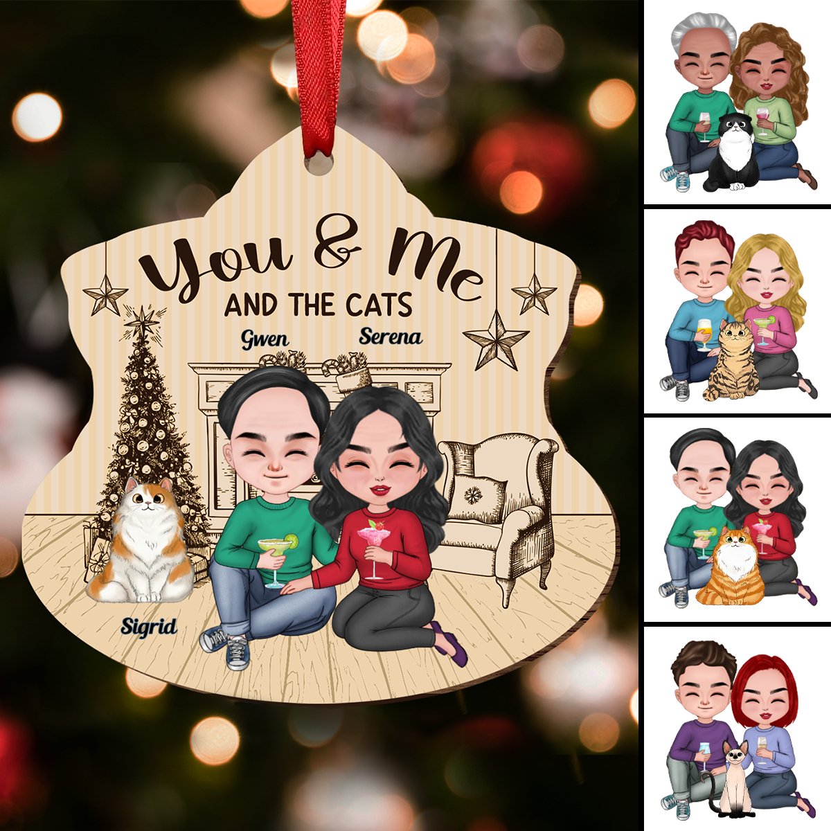 Couple - You & Me And The Cat - Personalized Transparent Ornament