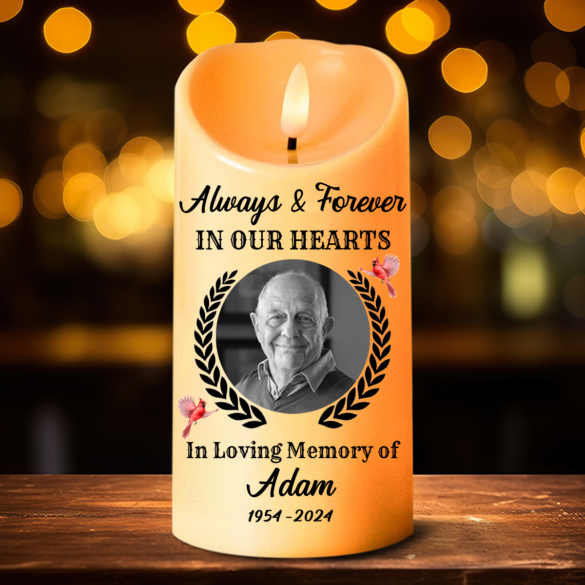 Custom Photo Always And Forever In Our Heart Memorial - Personalized Flameless LED Candle