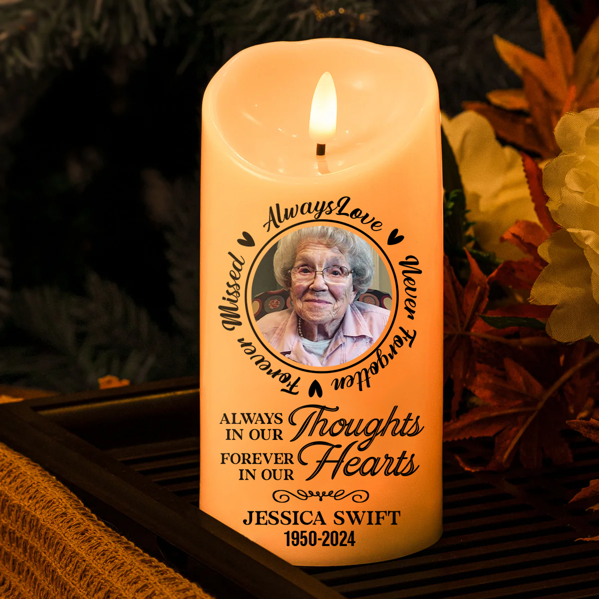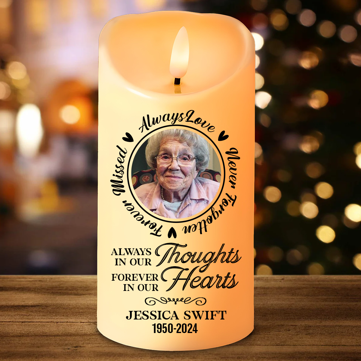 Custom Photo Always In Our Thoughts - Memorial Personalized Custom LED Candle - Christmas Gift, Sympathy Gift For Family Members