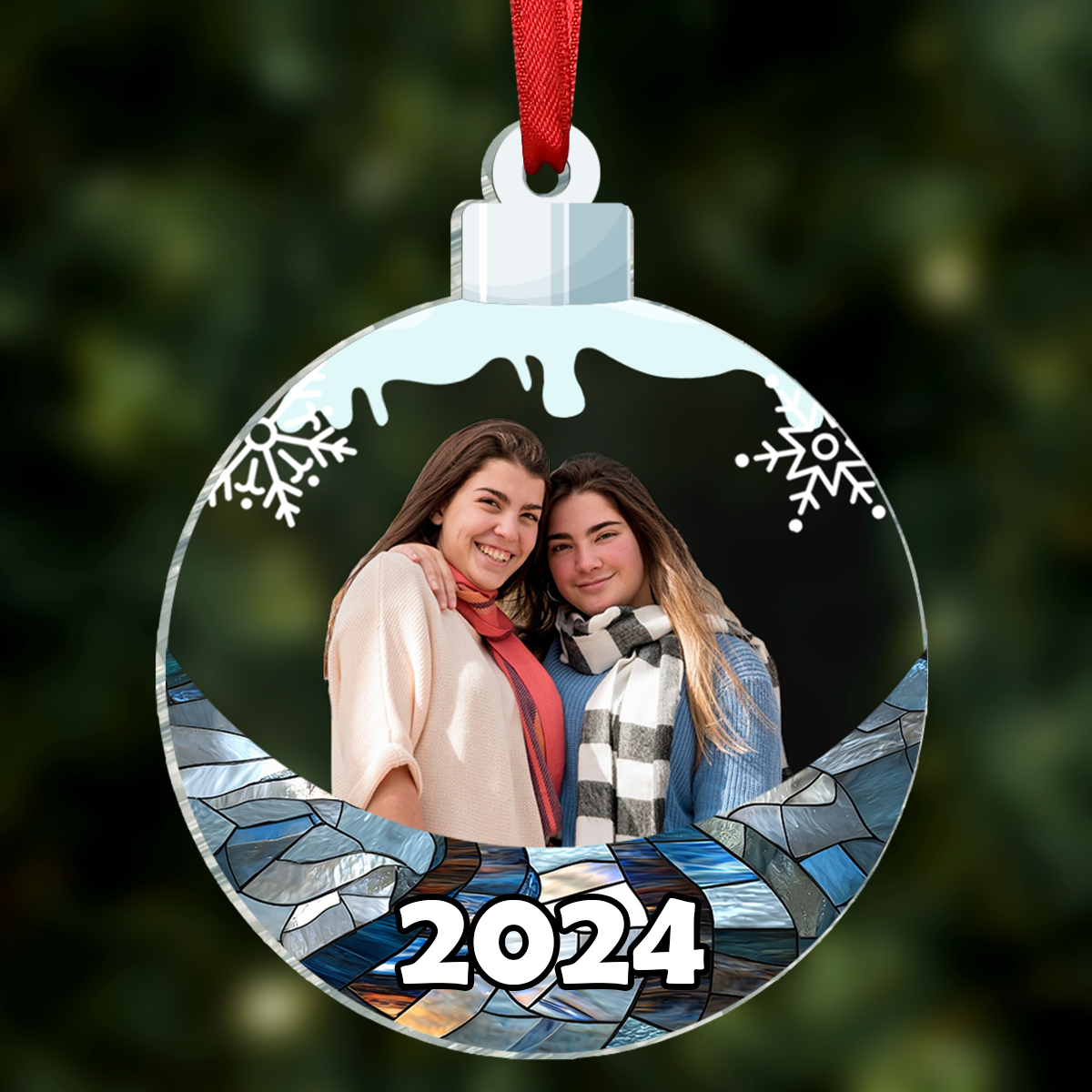 Custom Photo Besties Sisters Family Snowflakes - Personalized Custom Shaped Acrylic Ornament