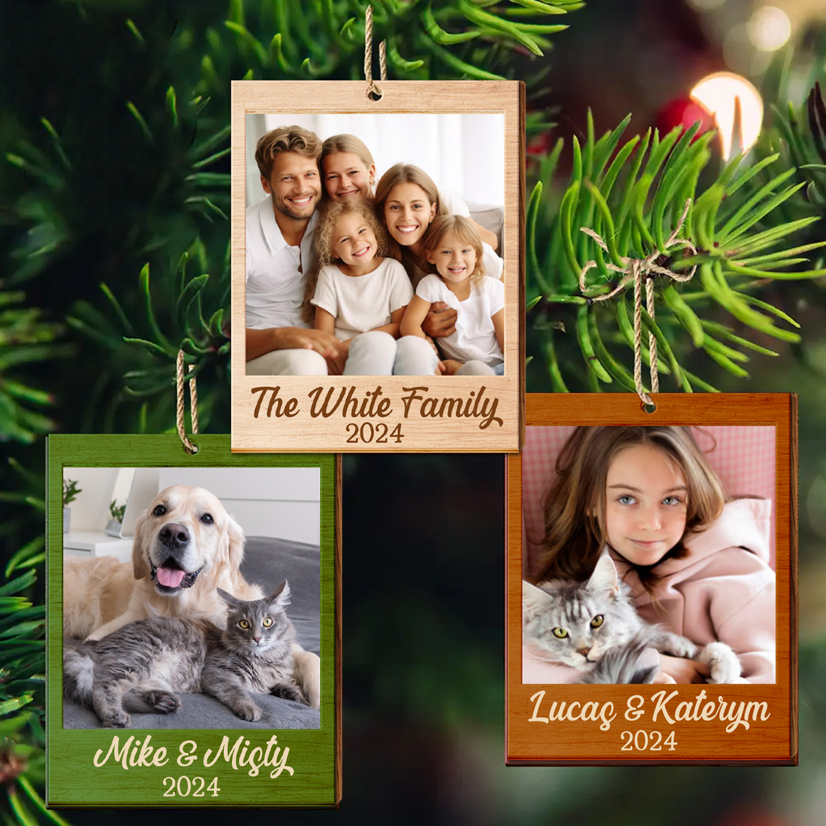 Custom Photo Christmas Family Couple Pet Lover - Personalized Wooden Ornament