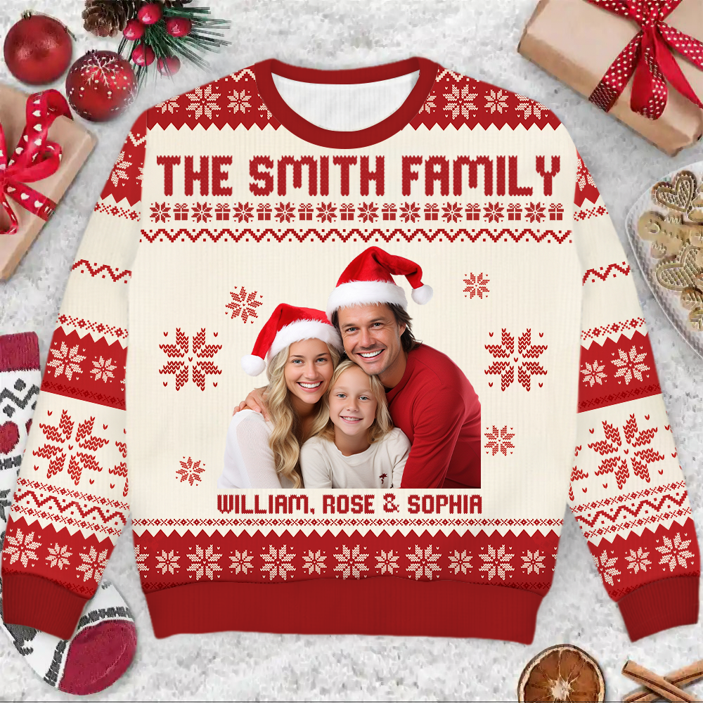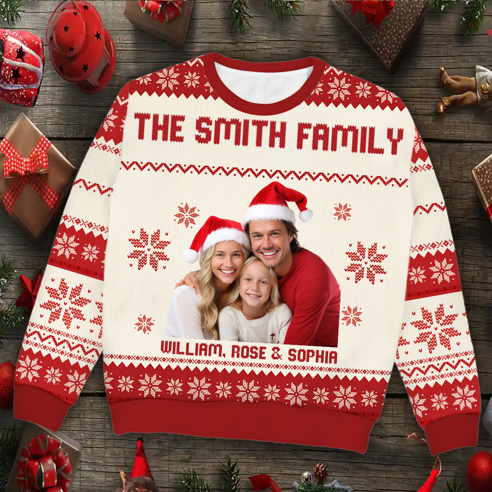 Custom Photo - Christmas, Funny Gift For Family, Couple, Dad, Mom, Grandpa, Grandma - Personalized Unisex Ugly Sweater